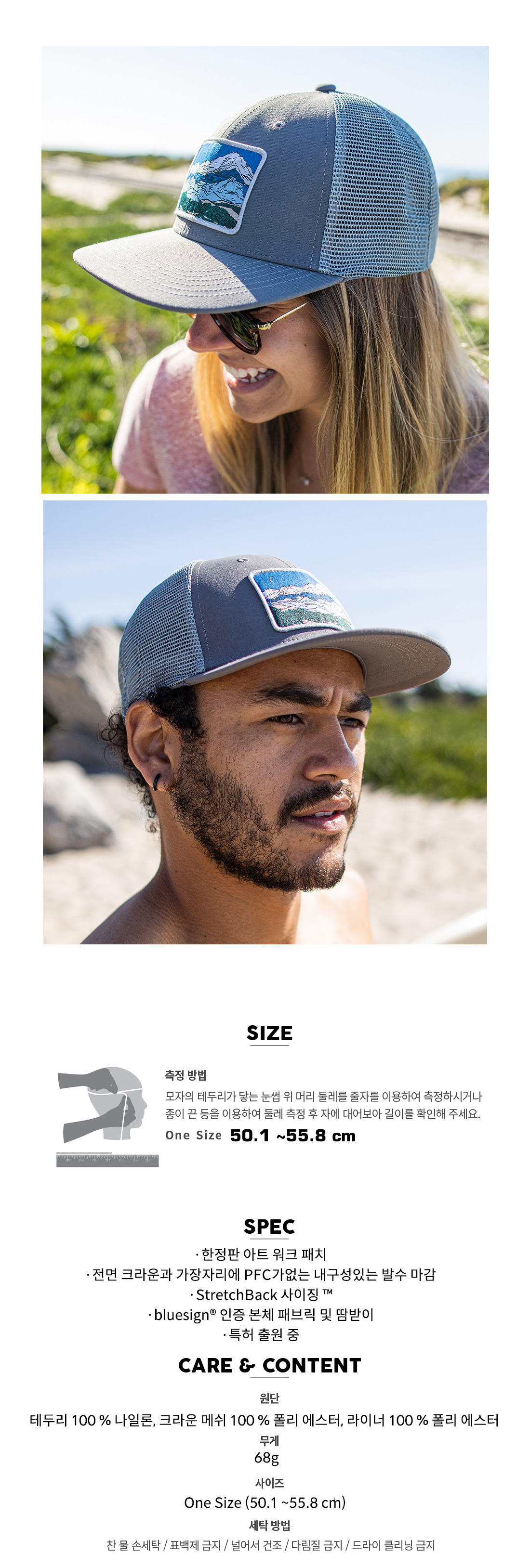 워싱된 코튼원단의 매쉬캡