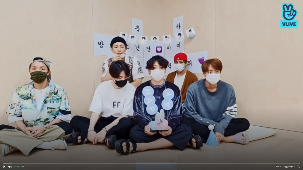 Dynimite Billboard 第一名 柾国生日派对V LIVE上戴