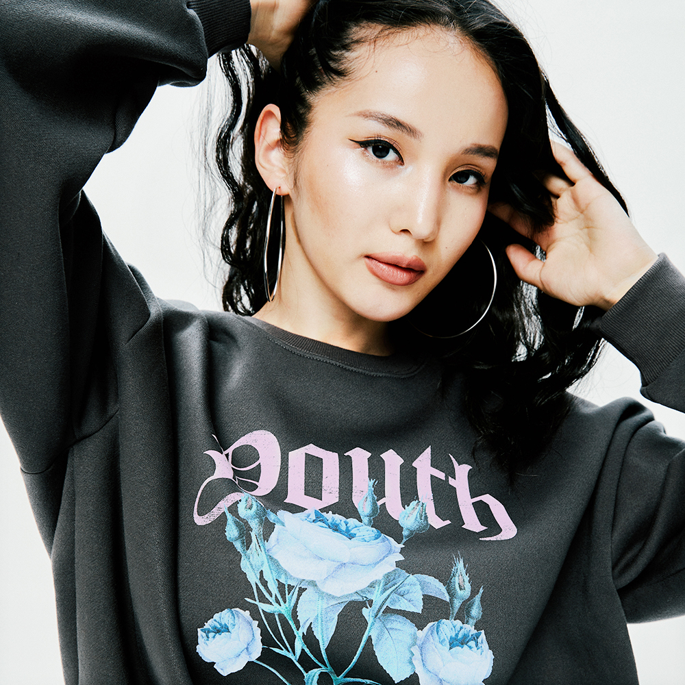 우먼즈 크롭 르 리스 발포 엠보자수 맨투맨 애쉬그레이(FCB4TS360W)