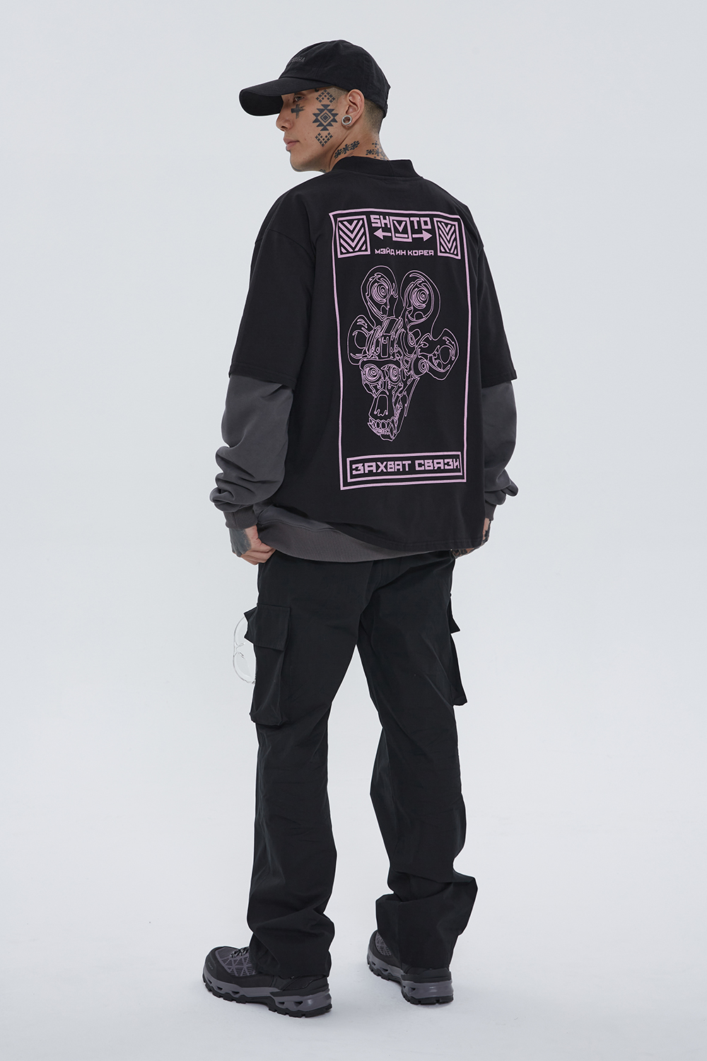 가벼운 소재로 그래픽이 특징인 스트릿 캐쥬얼 반팔티셔츠