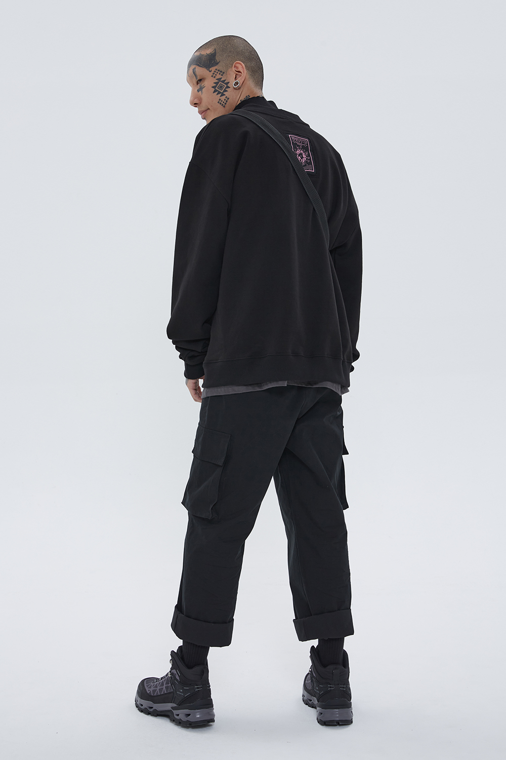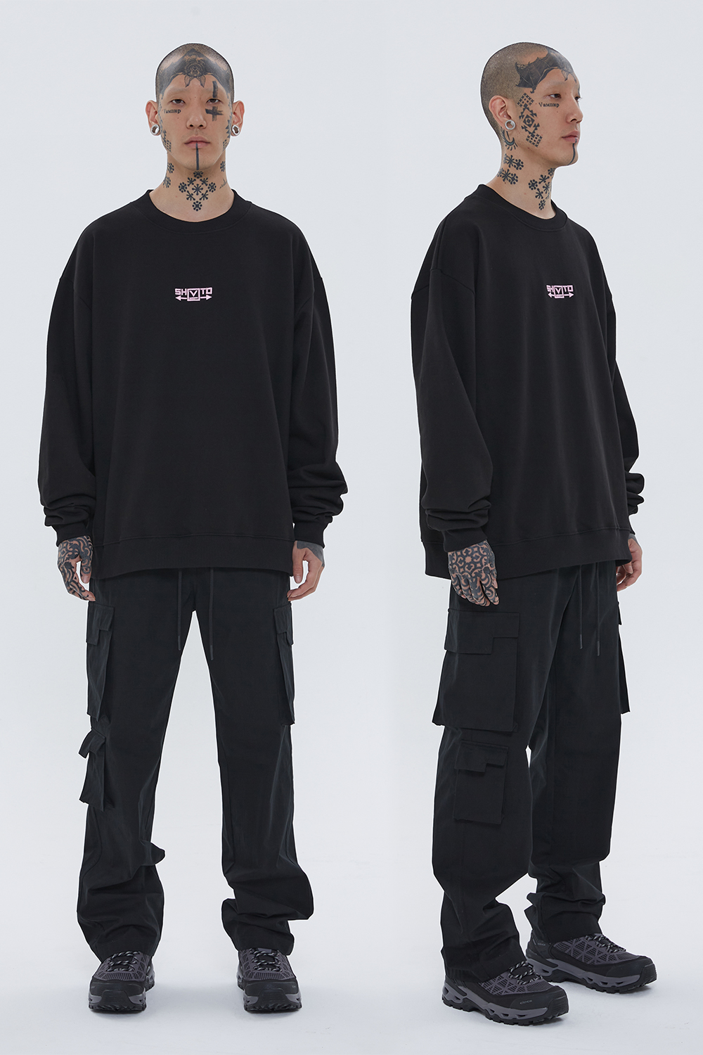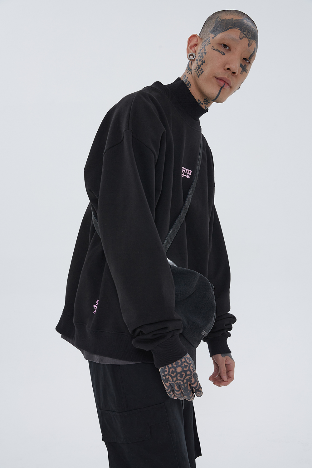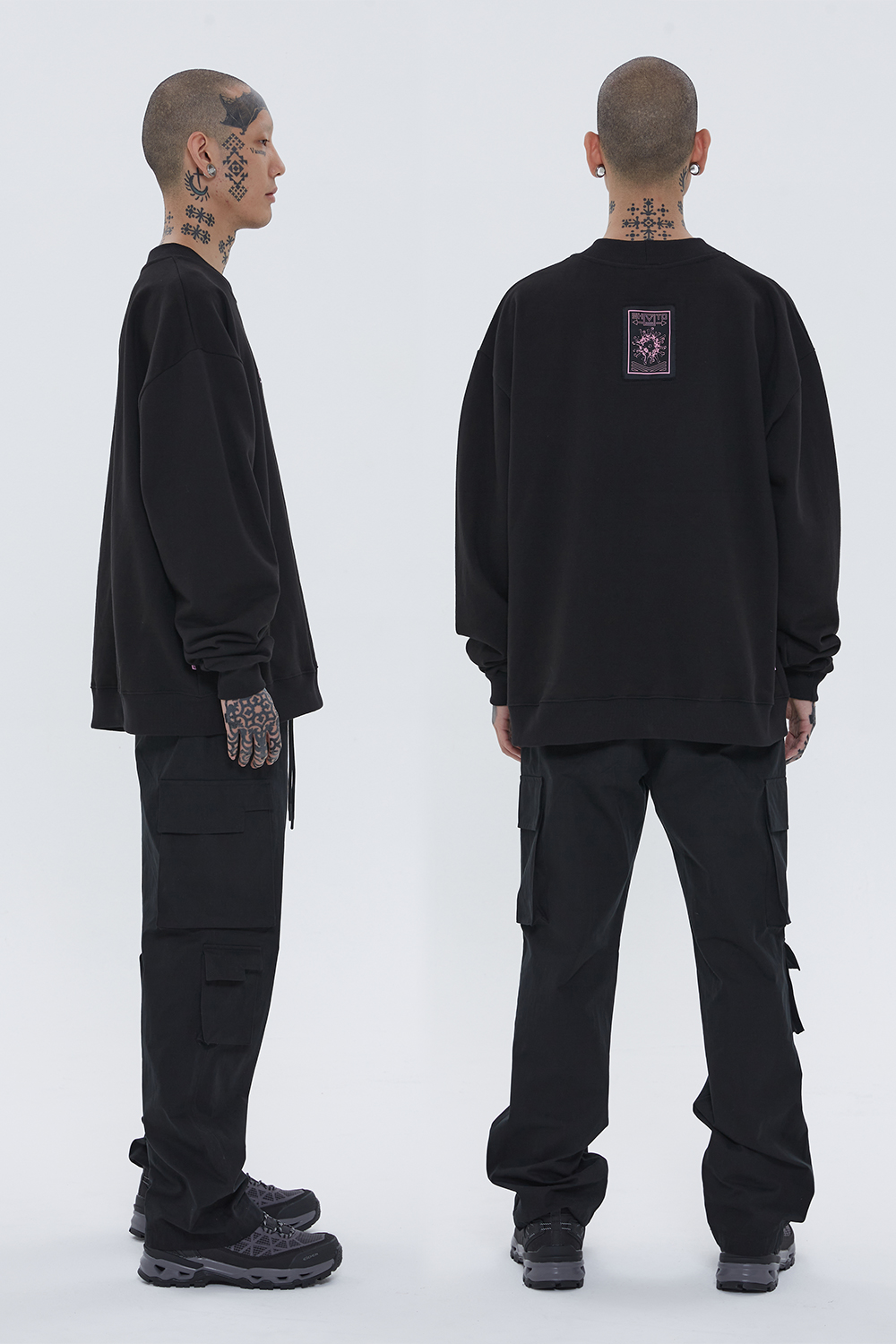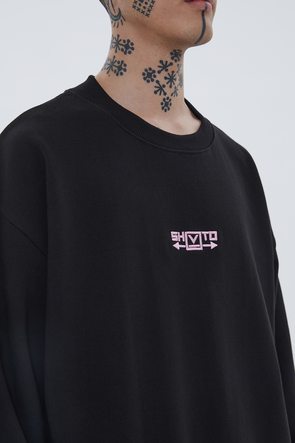 Positive 刺绣拉格兰卫衣 (黑色)