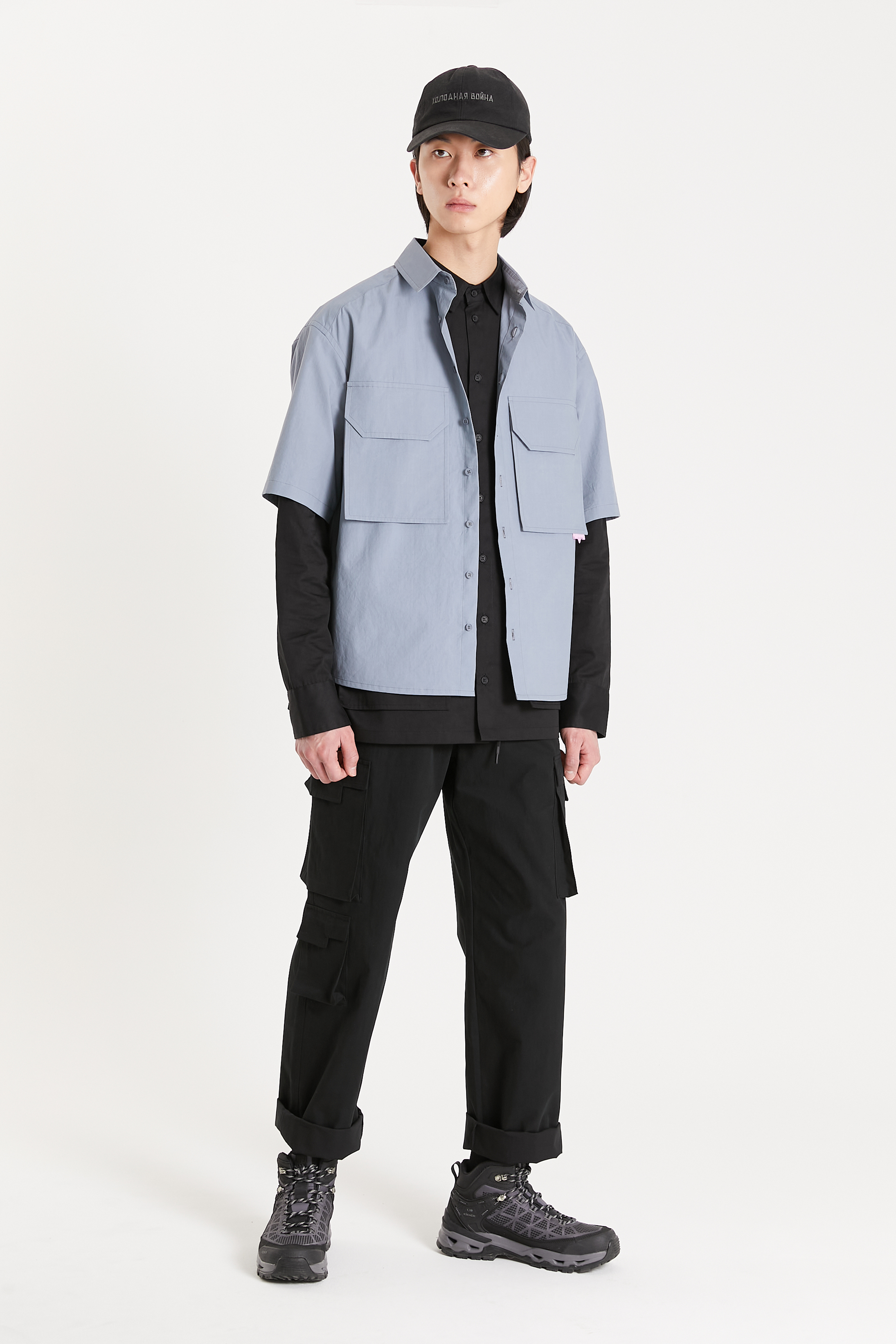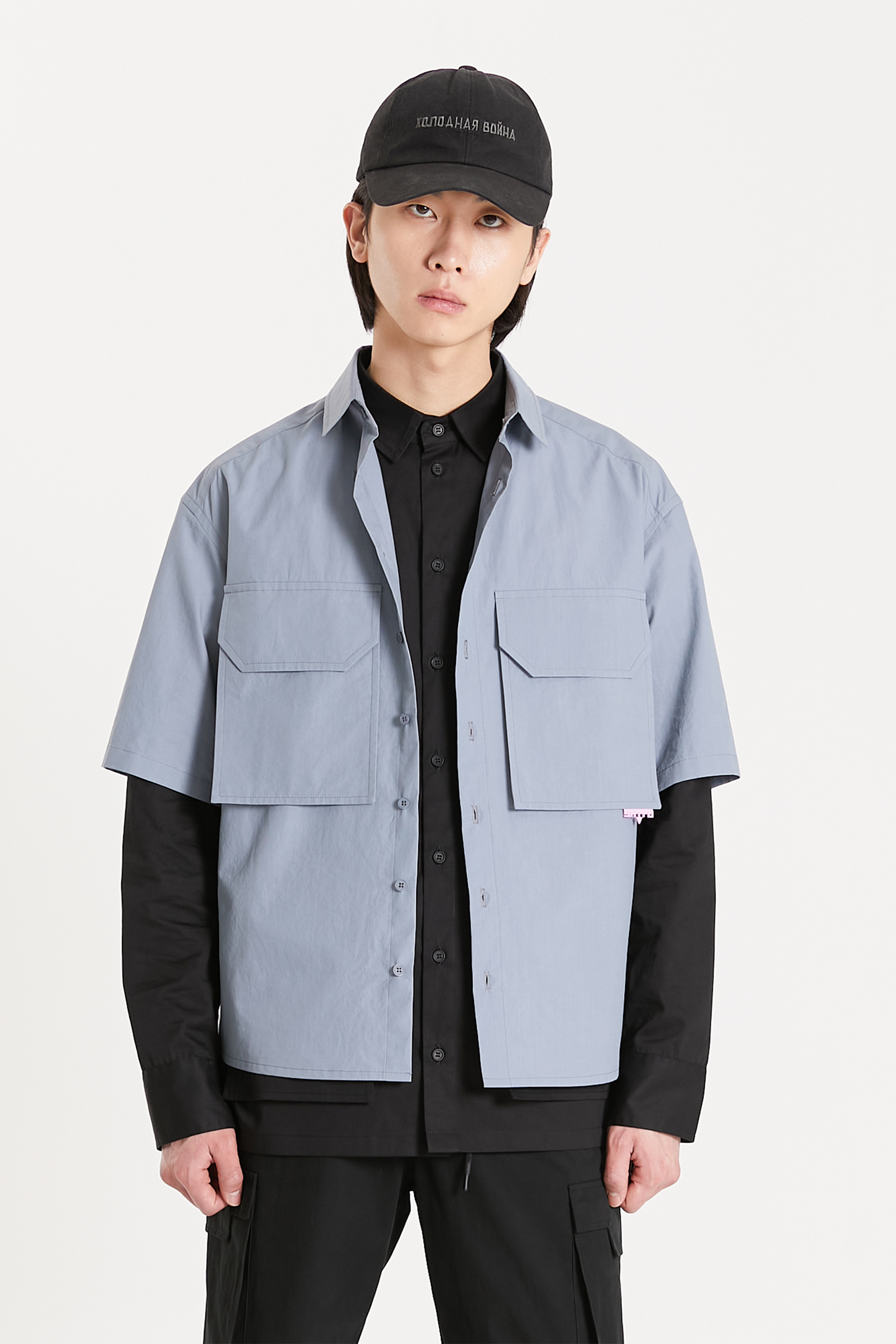 C 贴片牛津短袖衬衫白色天蓝色(男女皆宜)