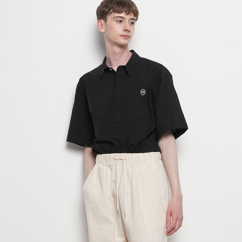 린넨 & 코튼 소재의 스트라이프 테일러 칼라 1/2 셔츠