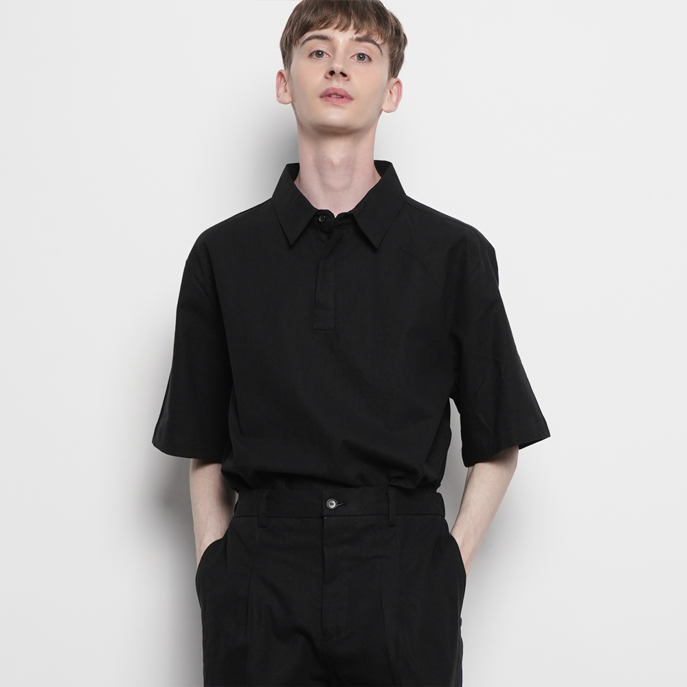 针织纽扣衬衫 黑色