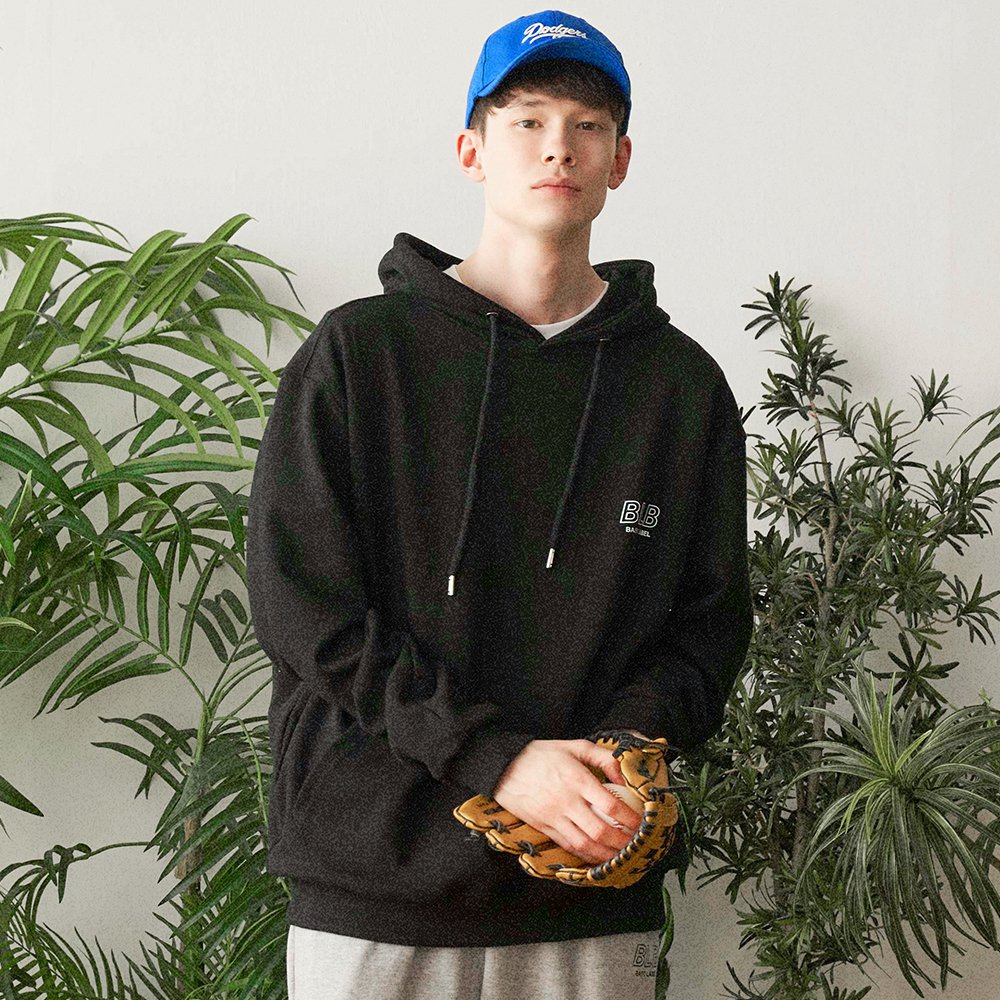 오버핏 후드 배색 엠보자수 후드