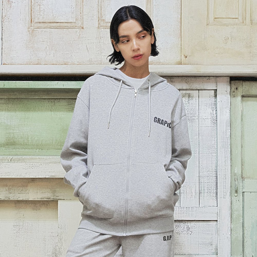 宽松 Plain 双向拉链连帽卫衣 (浅花灰)
