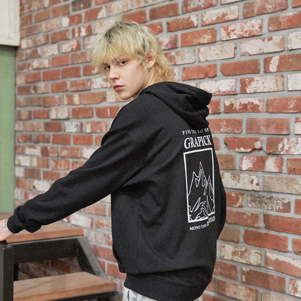 오버핏 후드 배색 엠보자수 후드 블랙(FCF3TS645M)