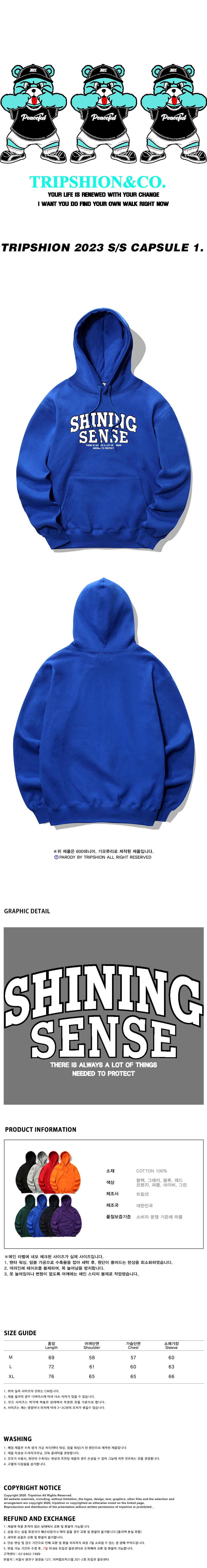 오버핏 후드 배색 엠보자수 후드