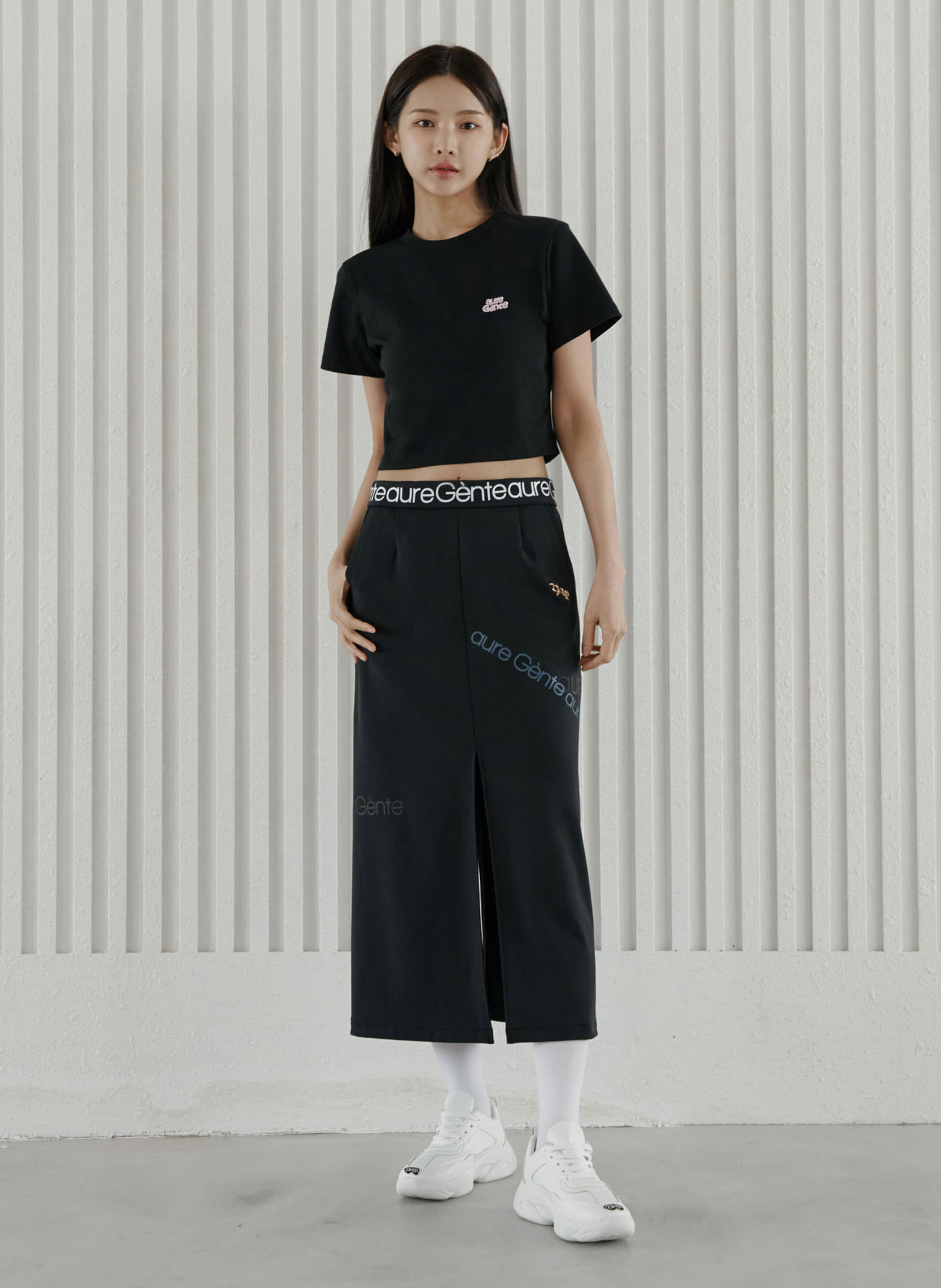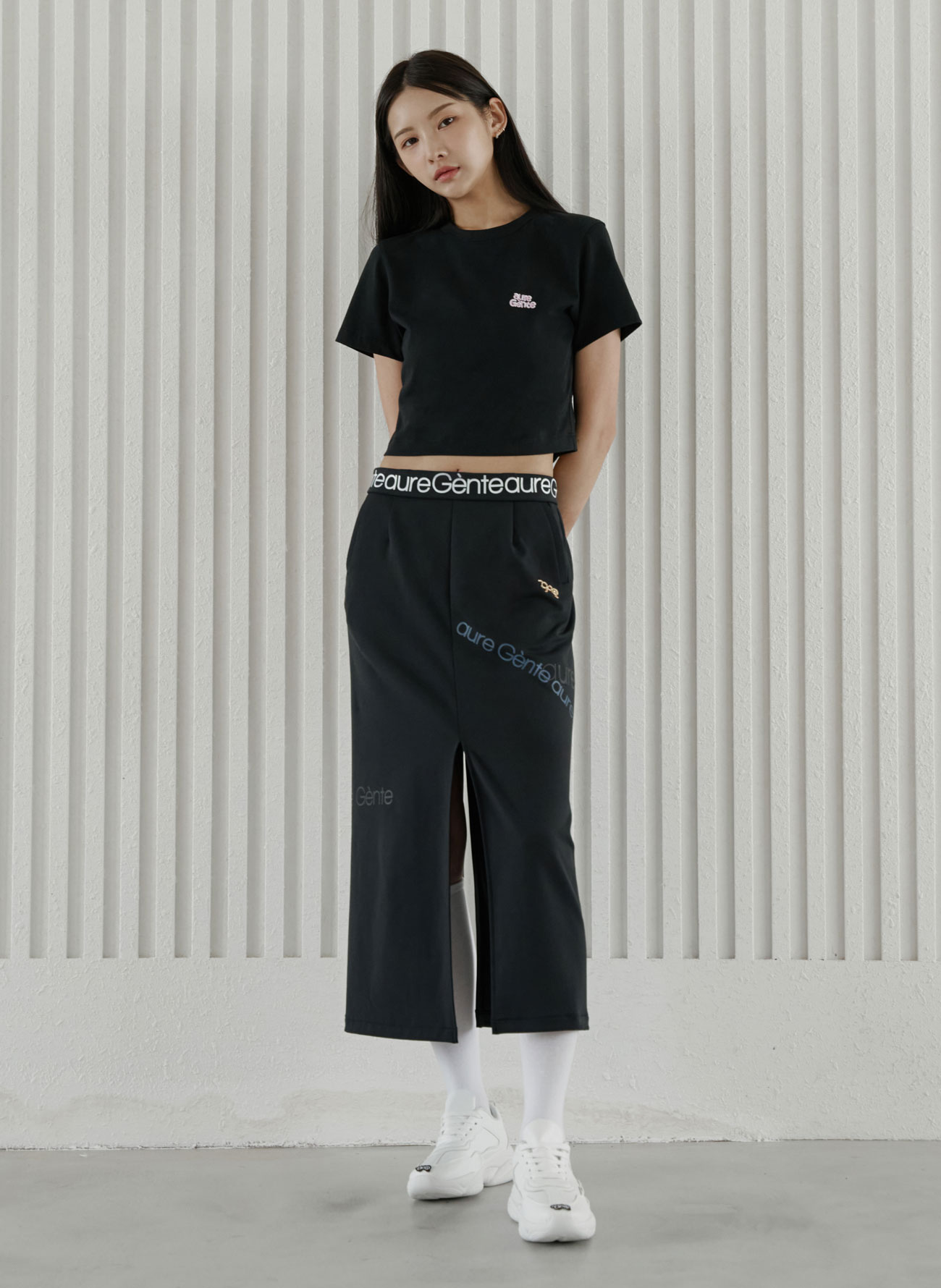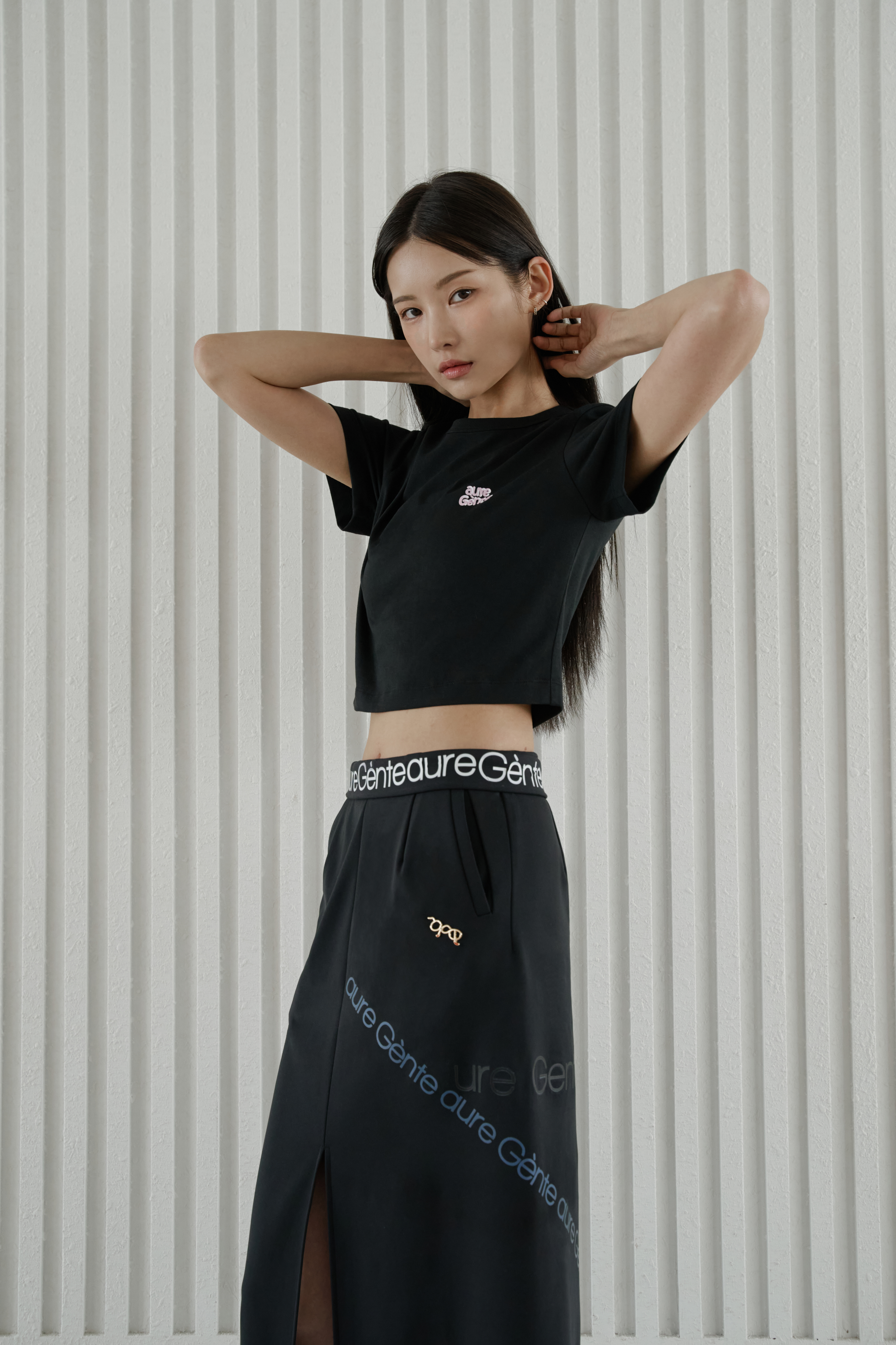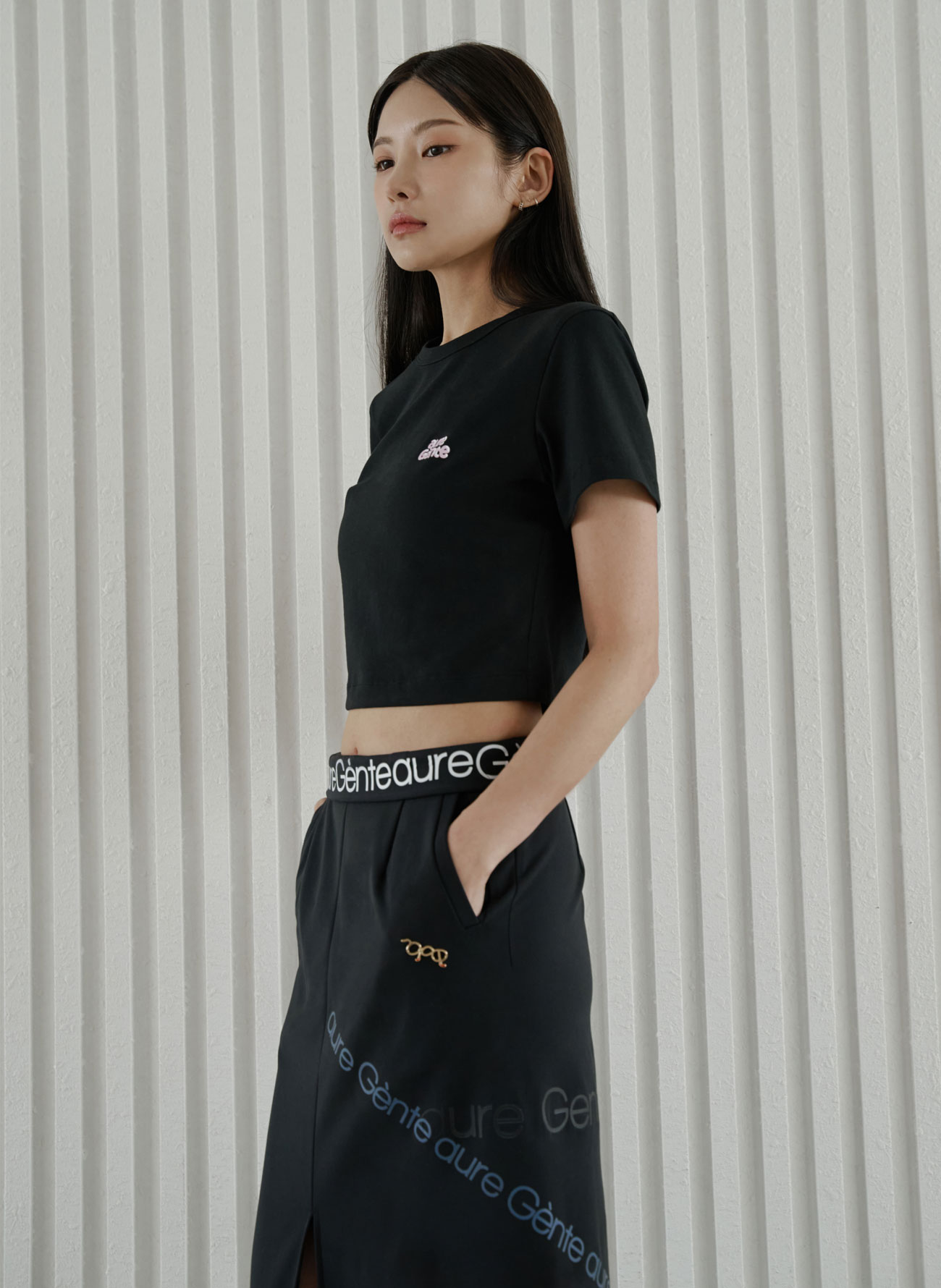 스트레치성이 좋은 탄탄한 조직의 소재는 바디 실루엣을 더욱 날씬하게 보이도록 잡아줍니다.