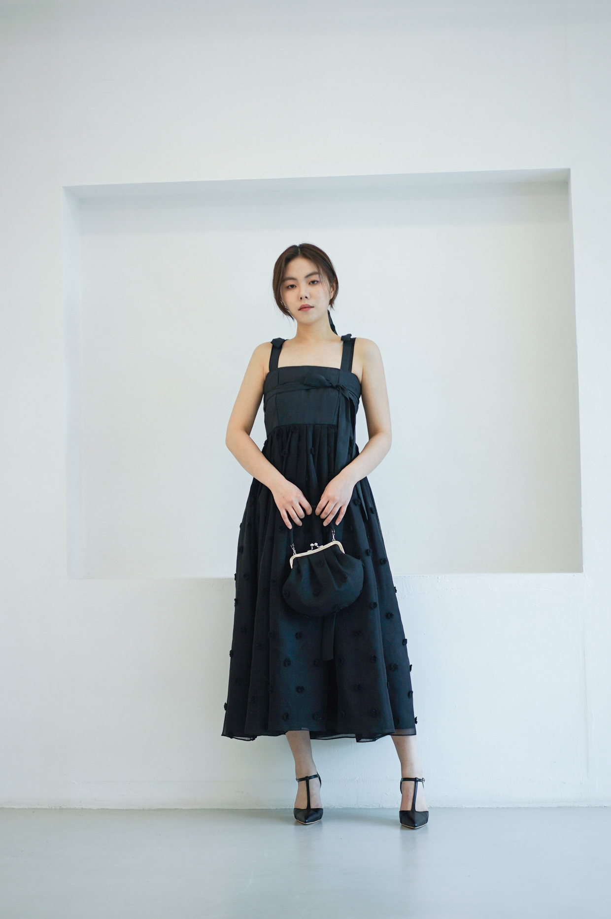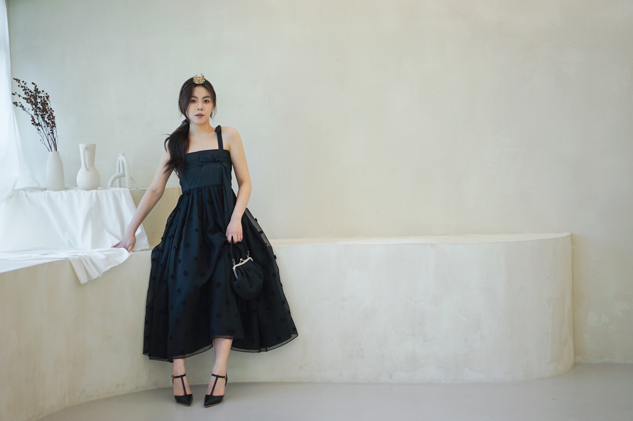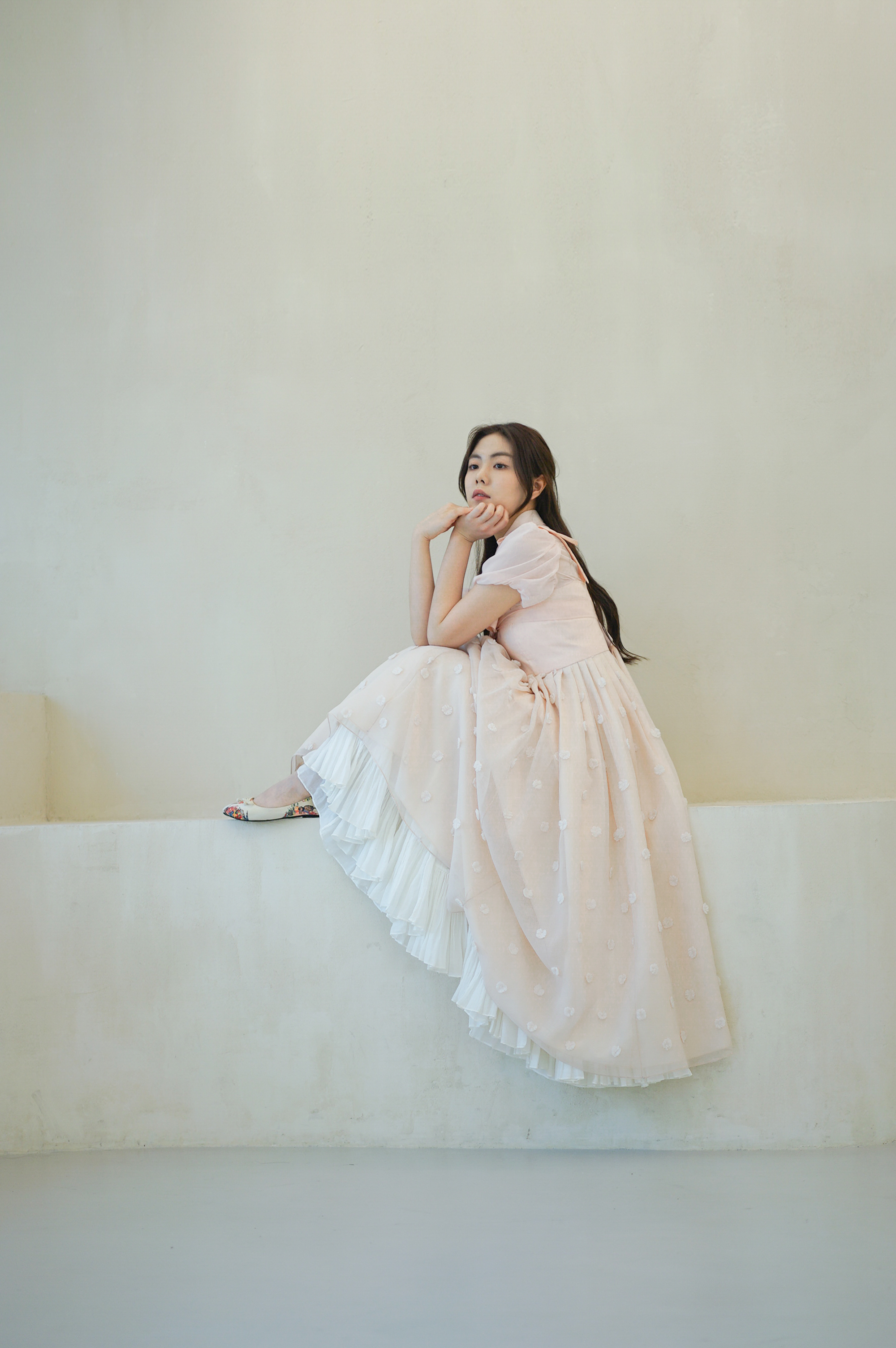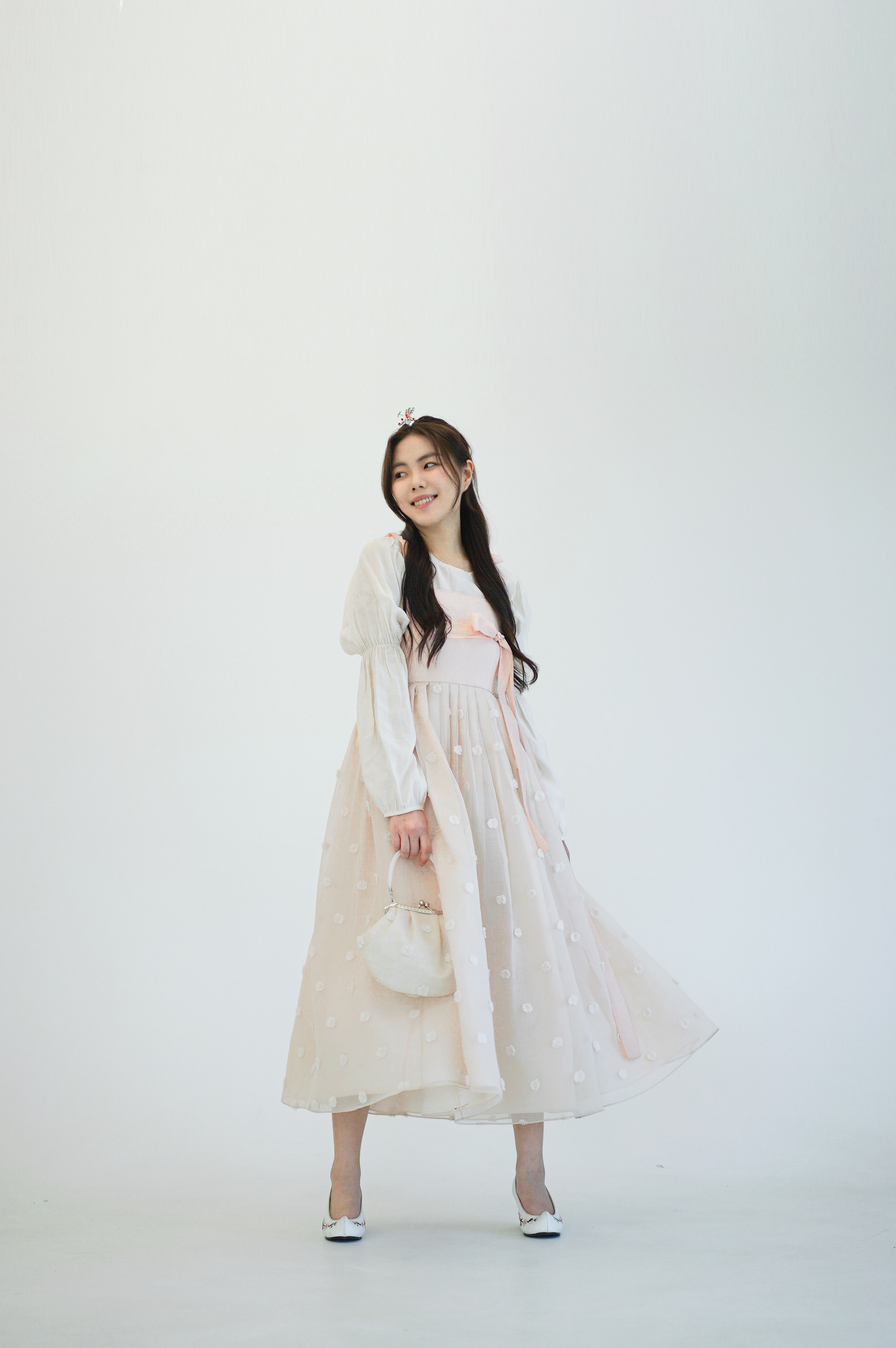 조선 후기에 나타난 짧은 가슴선과 길어진 허리선의 실루엣을 모티브로 디자인된 원피스입니다.