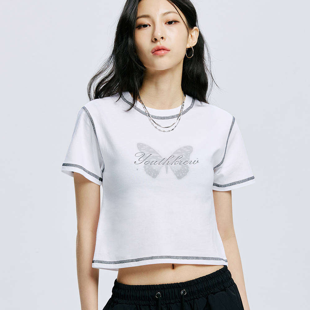 그래픽이 들어간 슬림핏의 반팔티입니다.