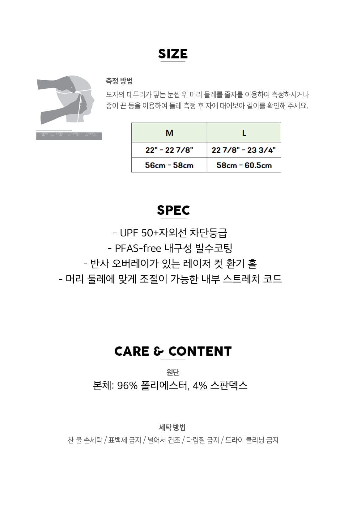 안정적인 각도의 챙이 자외선을 더욱 효과적으로 차단! 낚시, 하이킹, 일상에서 모두 착용 가능한 버킷햇!