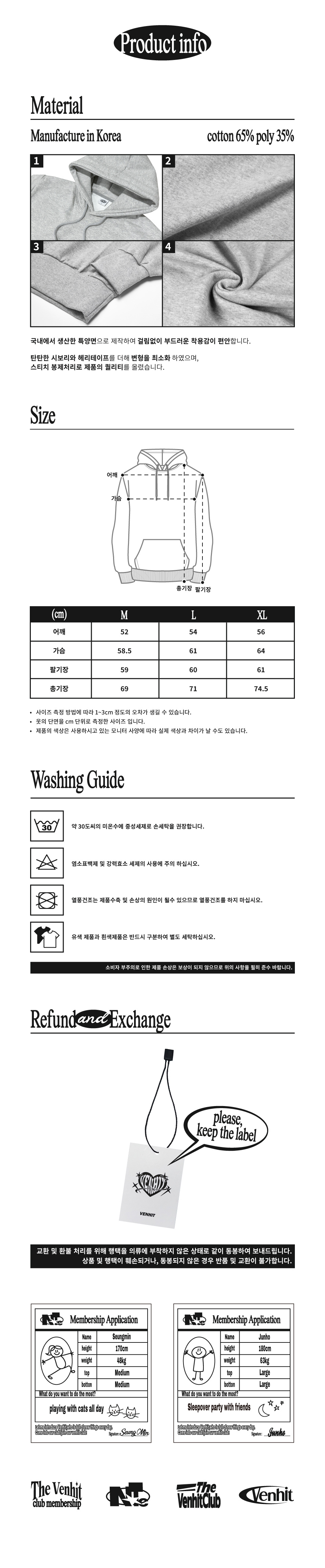 오버핏 후드 배색 엠보자수 후드