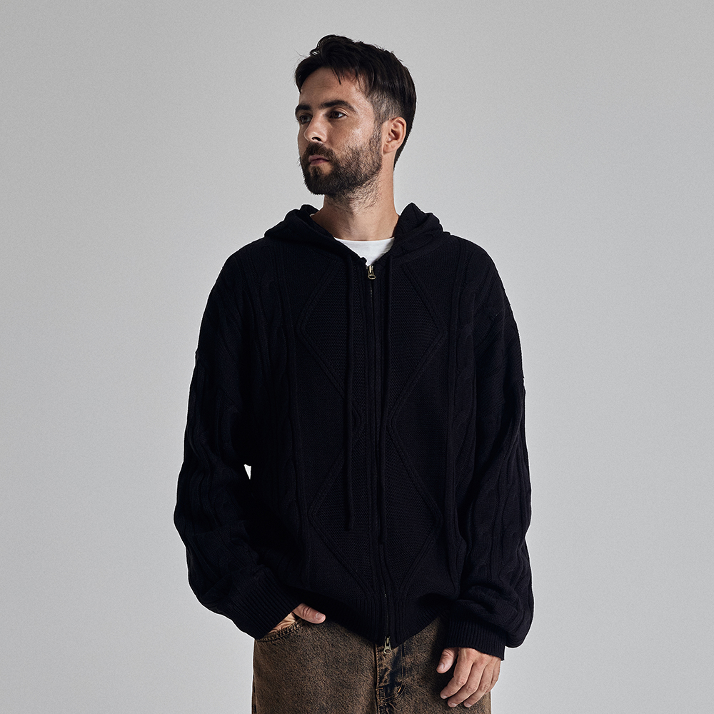 层叠标志摇粒绒连帽卫衣拉链款 - 黑色(摇粒绒款)