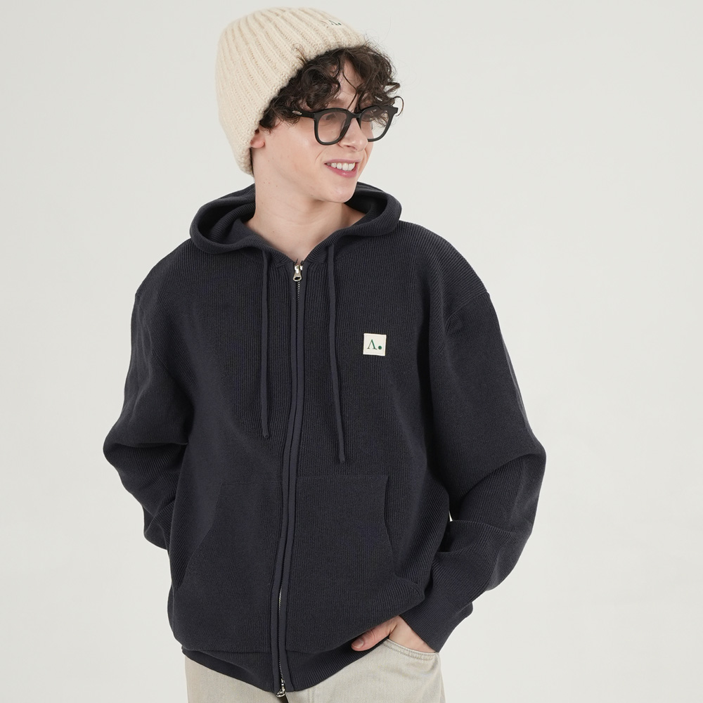 APPLIQUE STUD DYED HOOD ZIP-UP_CHAROAL