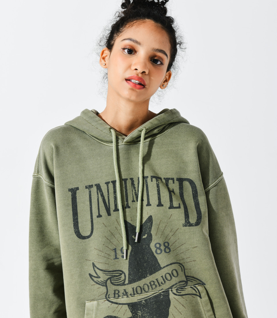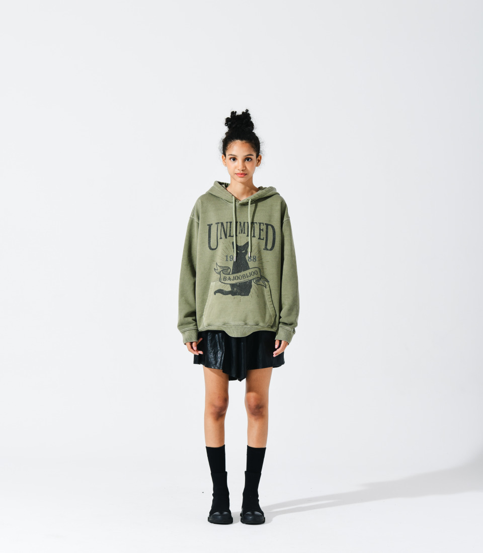 STAR CAT 오버핏 후드 티셔츠[메란지]