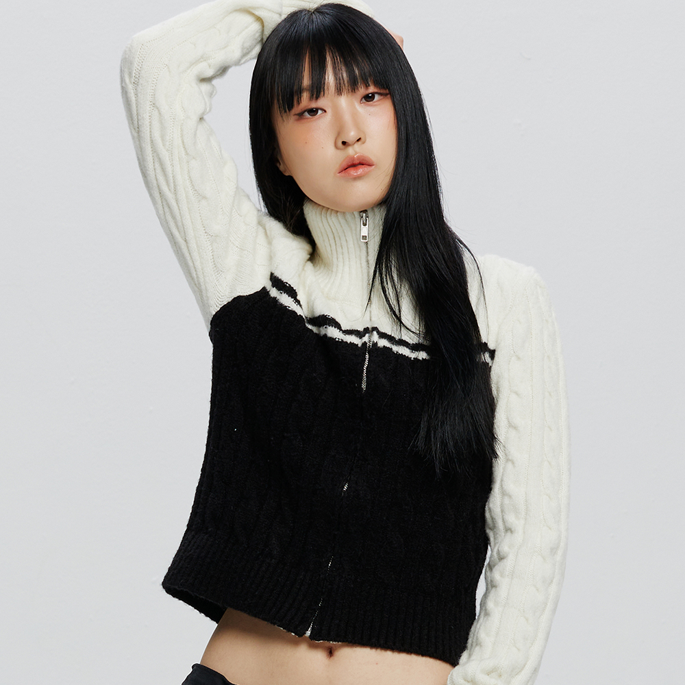 클래식하고 베이직한 꽈배기 조직과 볼드하지 않은 미디움 사이즈의 패턴으로 캐주얼한 디자인의 브이넥라인 니트 가디건 입니다.