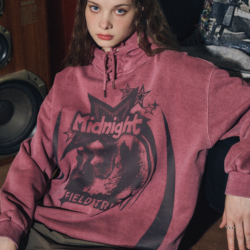 STAR CAT 오버핏 후드 티셔츠[메란지]