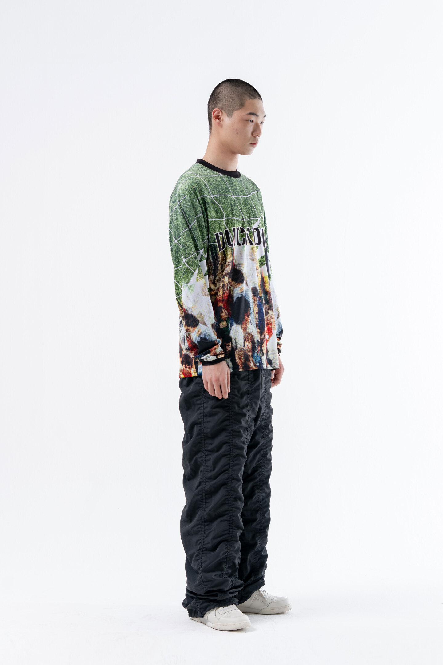 -은은한 그래픽 패턴 메쉬 롱슬리브