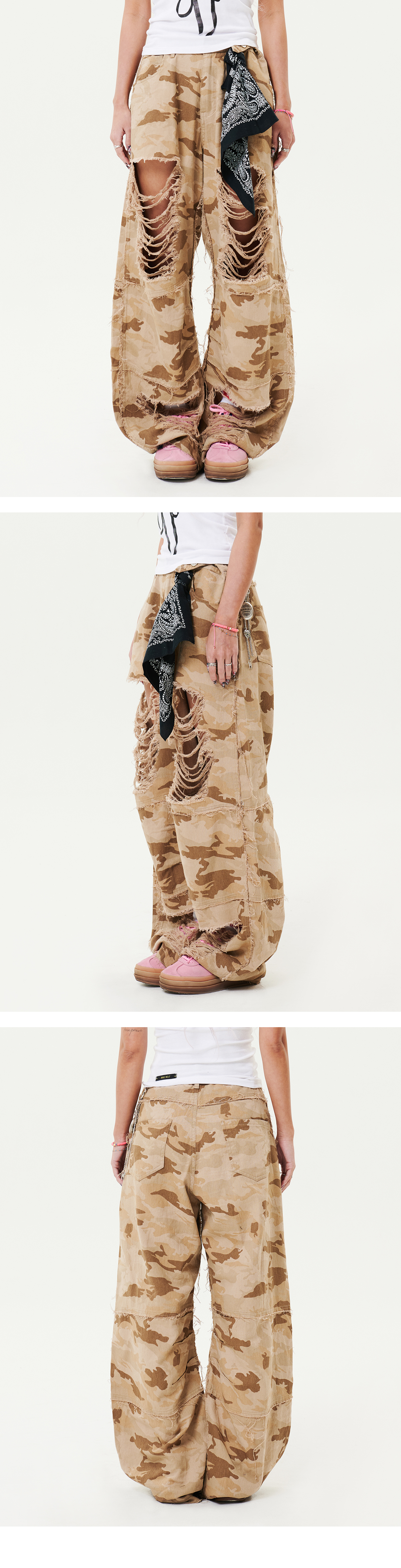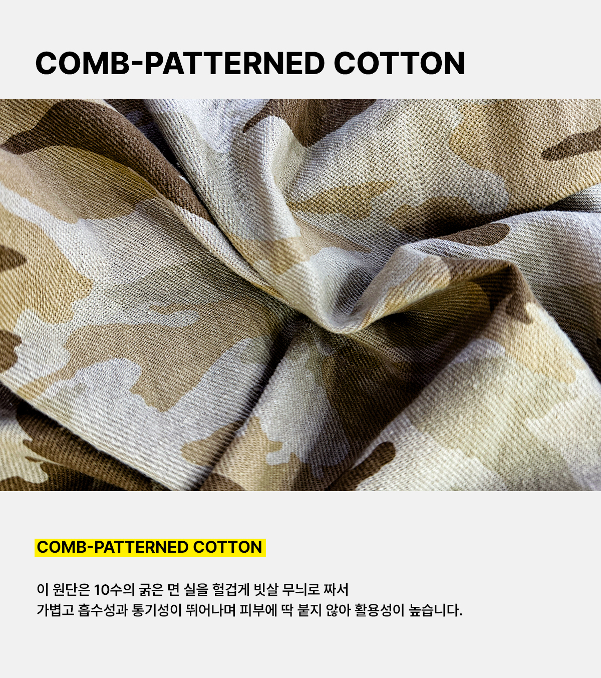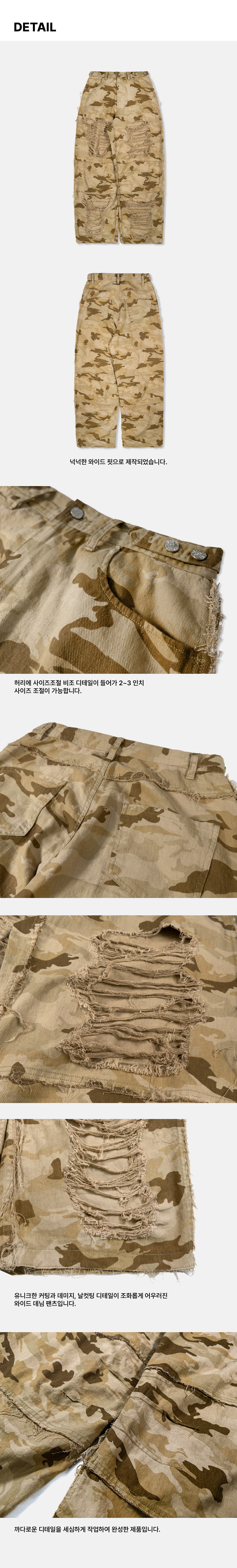 메쉬 원단,우드랜드 패턴의 와이드한 핏의 조거 팬츠
