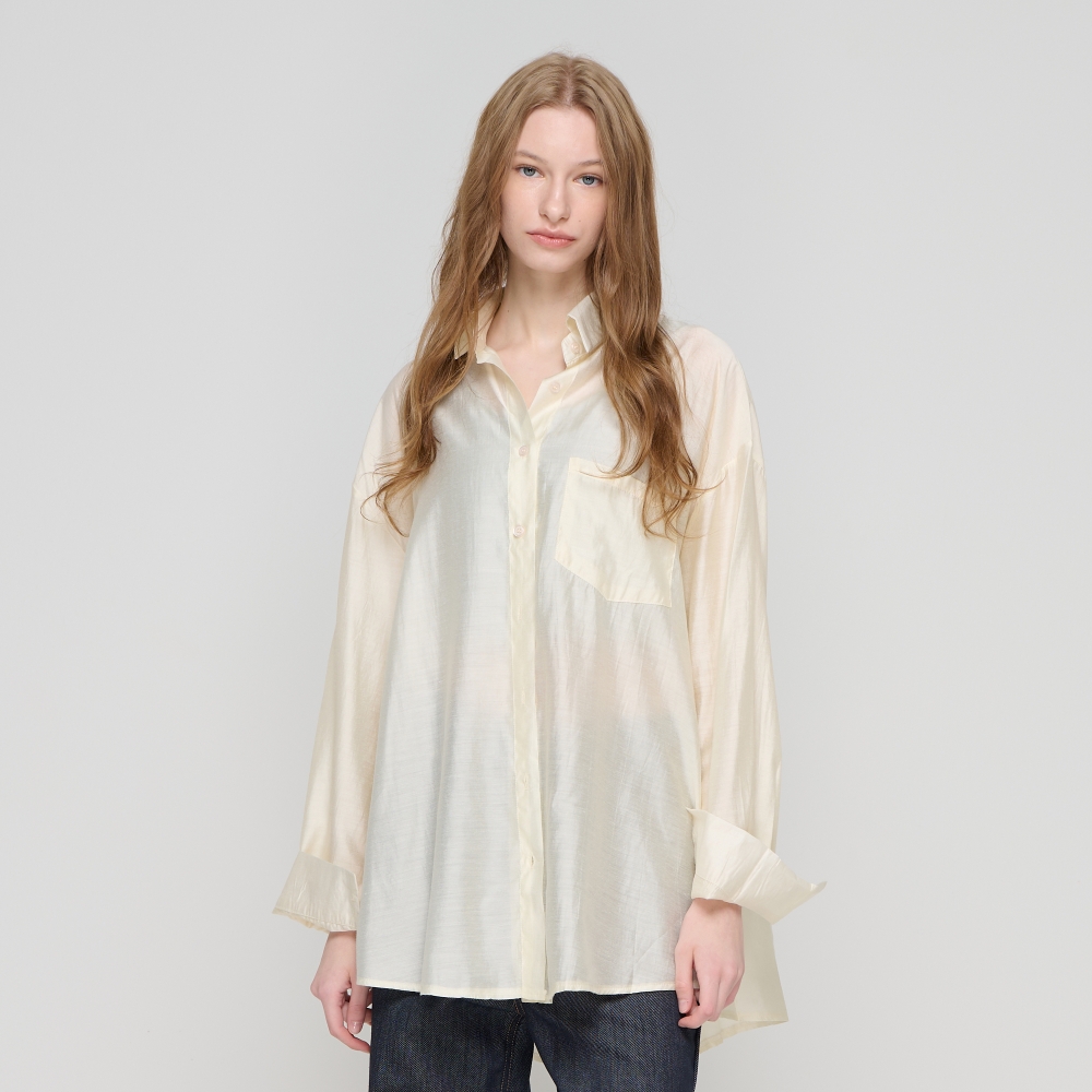 发光抽褶衬衫(象牙色)