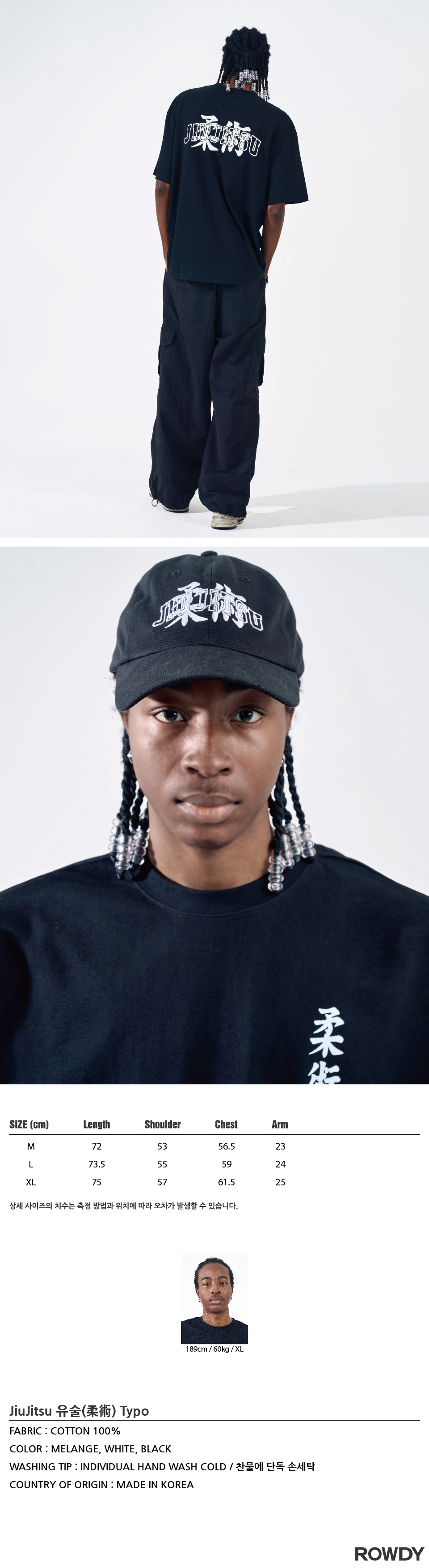 - 남성모델 : 189 / 60 XL사이즈 착용