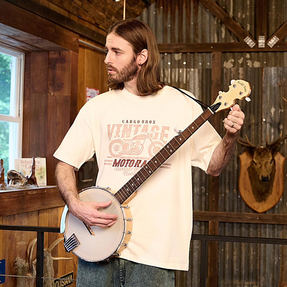 가벼운 소재로 그래픽이 특징인 스트릿 캐쥬얼 반팔티셔츠