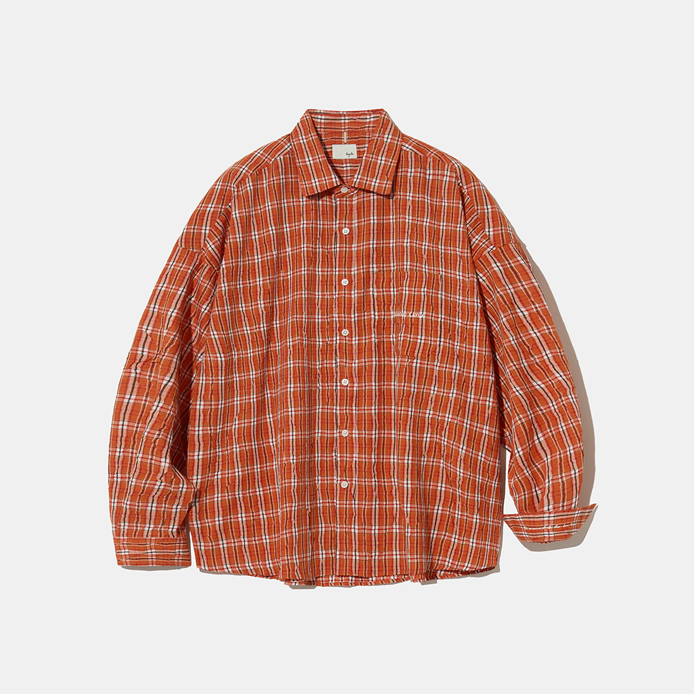 - *크리즈 후가공 된 입체적이고 희소성 있는 주황빛 컬러의 체크 원단