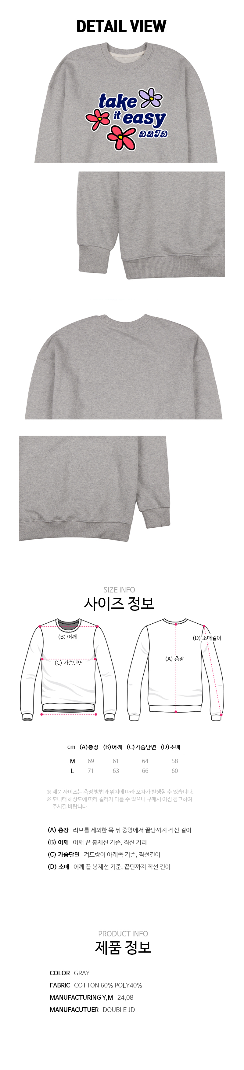 희망을 상징 하는 데이지 꽃이 들어간 맨투맨 제품 입니다