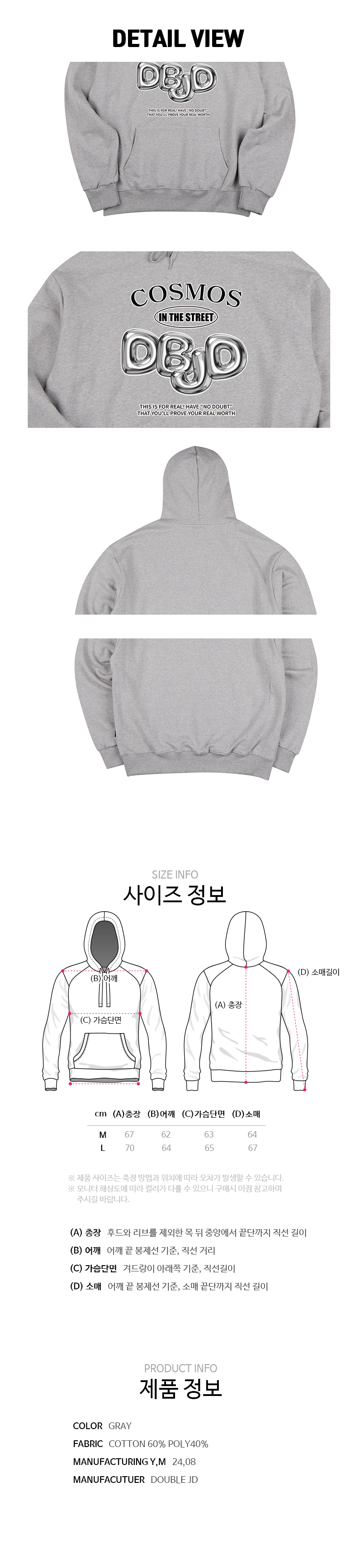 오버핏 후드 배색 엠보자수 후드