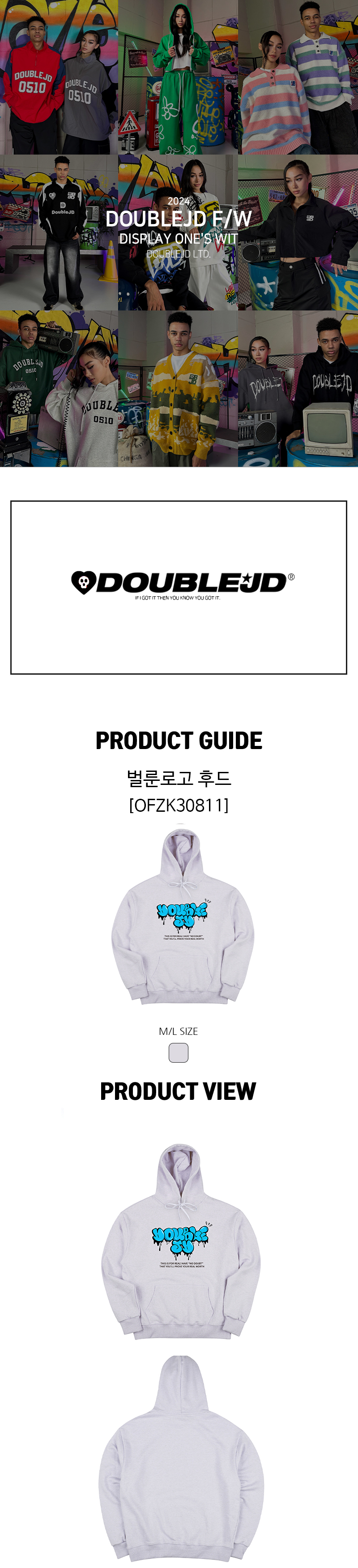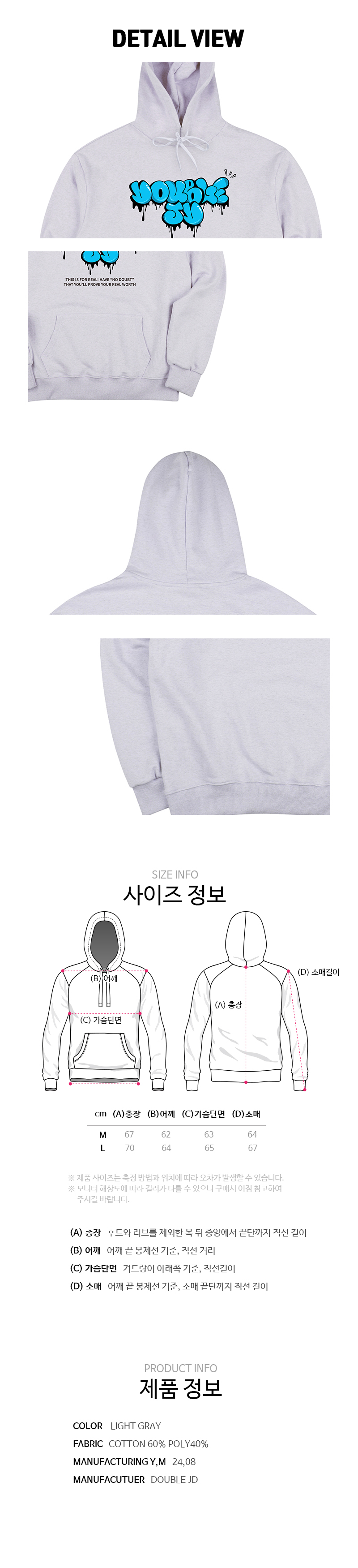 오버핏 후드 배색 엠보자수 후드