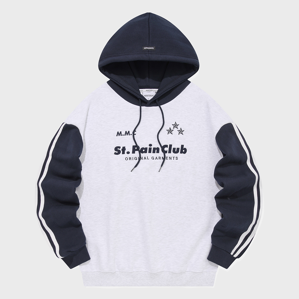 오버핏 후드 배색 엠보자수 후드