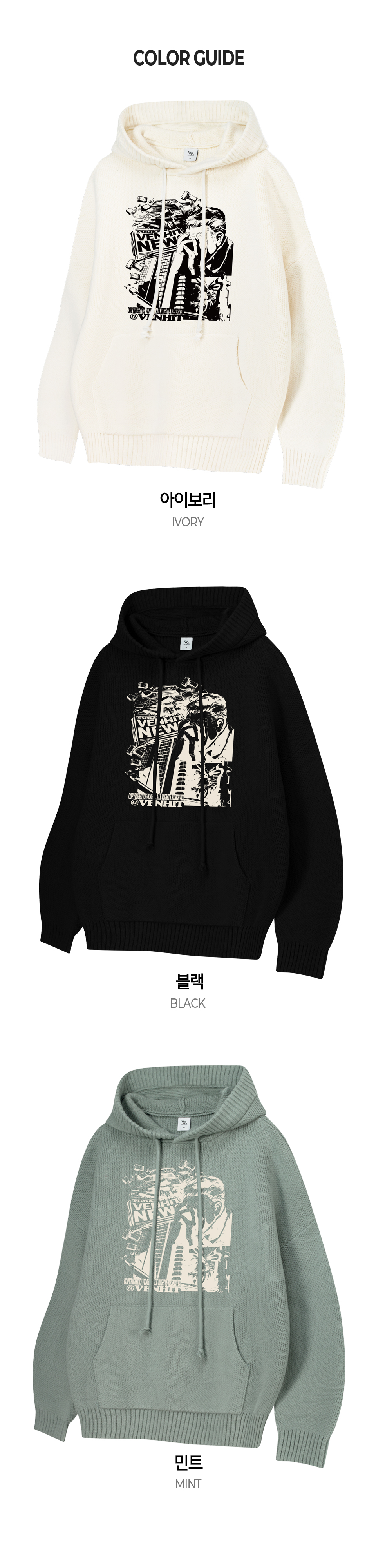 오버핏 후드 배색 엠보자수 후드
