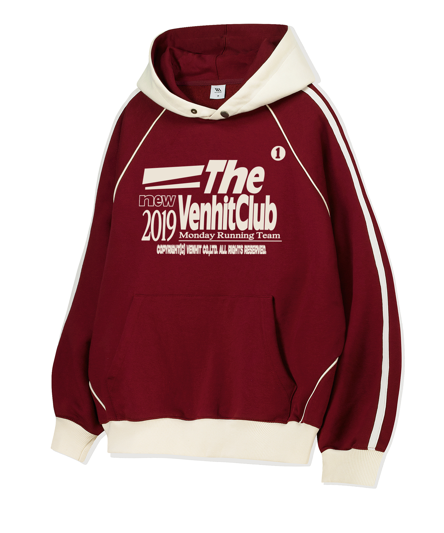 오버핏 후드 배색 엠보자수 후드 버건디(FCF3TS645M)