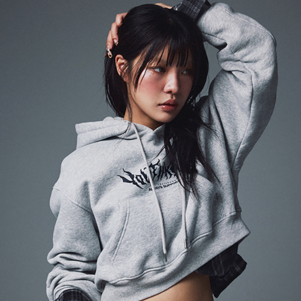 우먼즈 크롭 베어프렌즈 엠보자수 후드 그레이(FCB3TS359W)