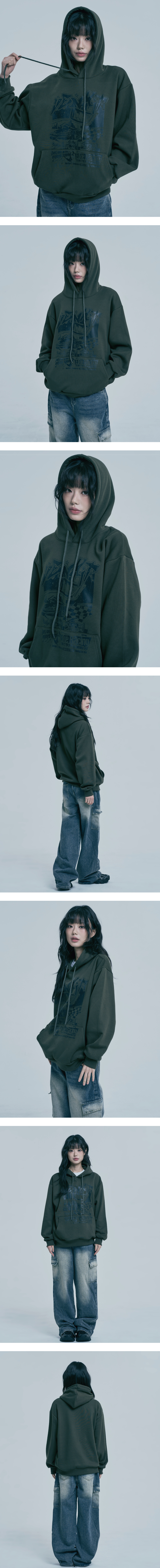 오버핏 후드 배색 엠보자수 후드 블랙(FCF3TS645M)