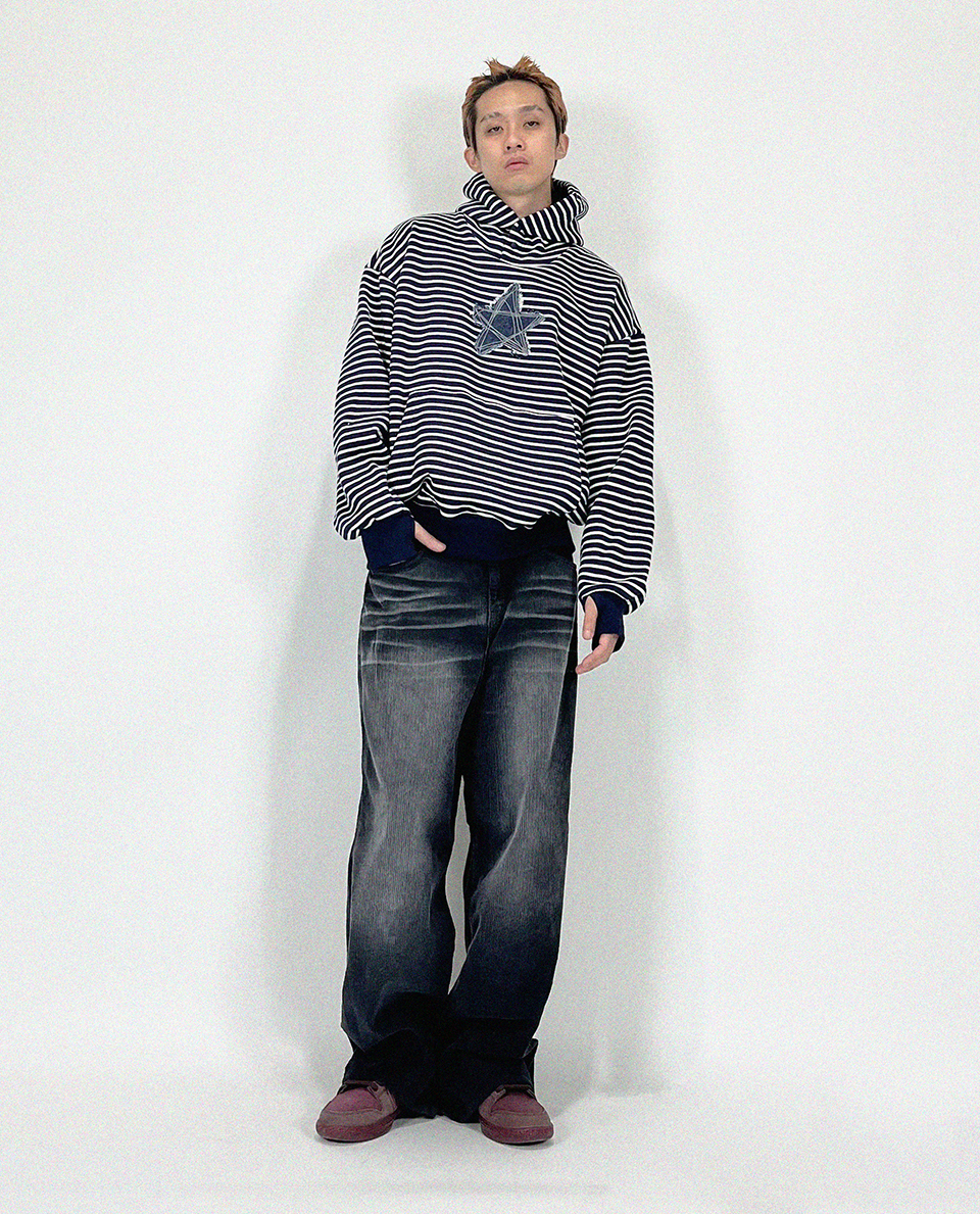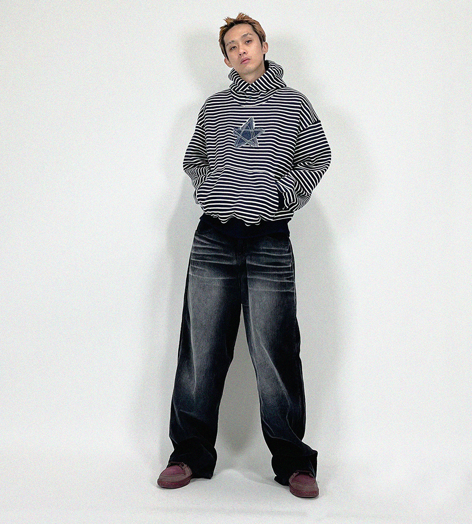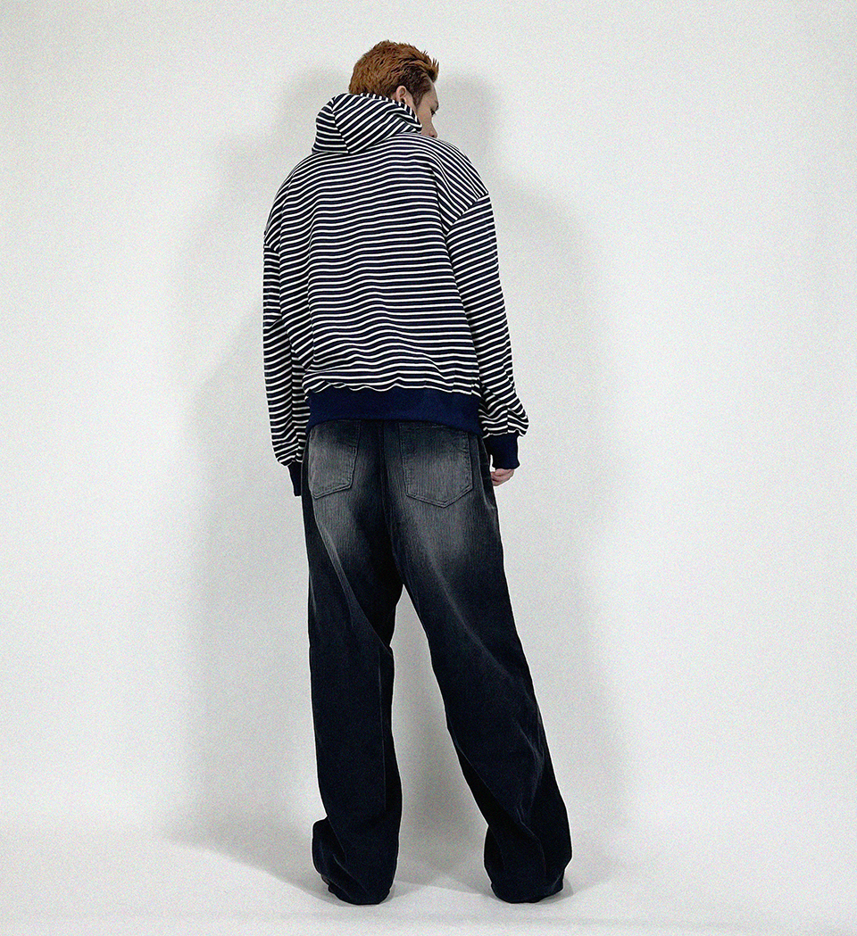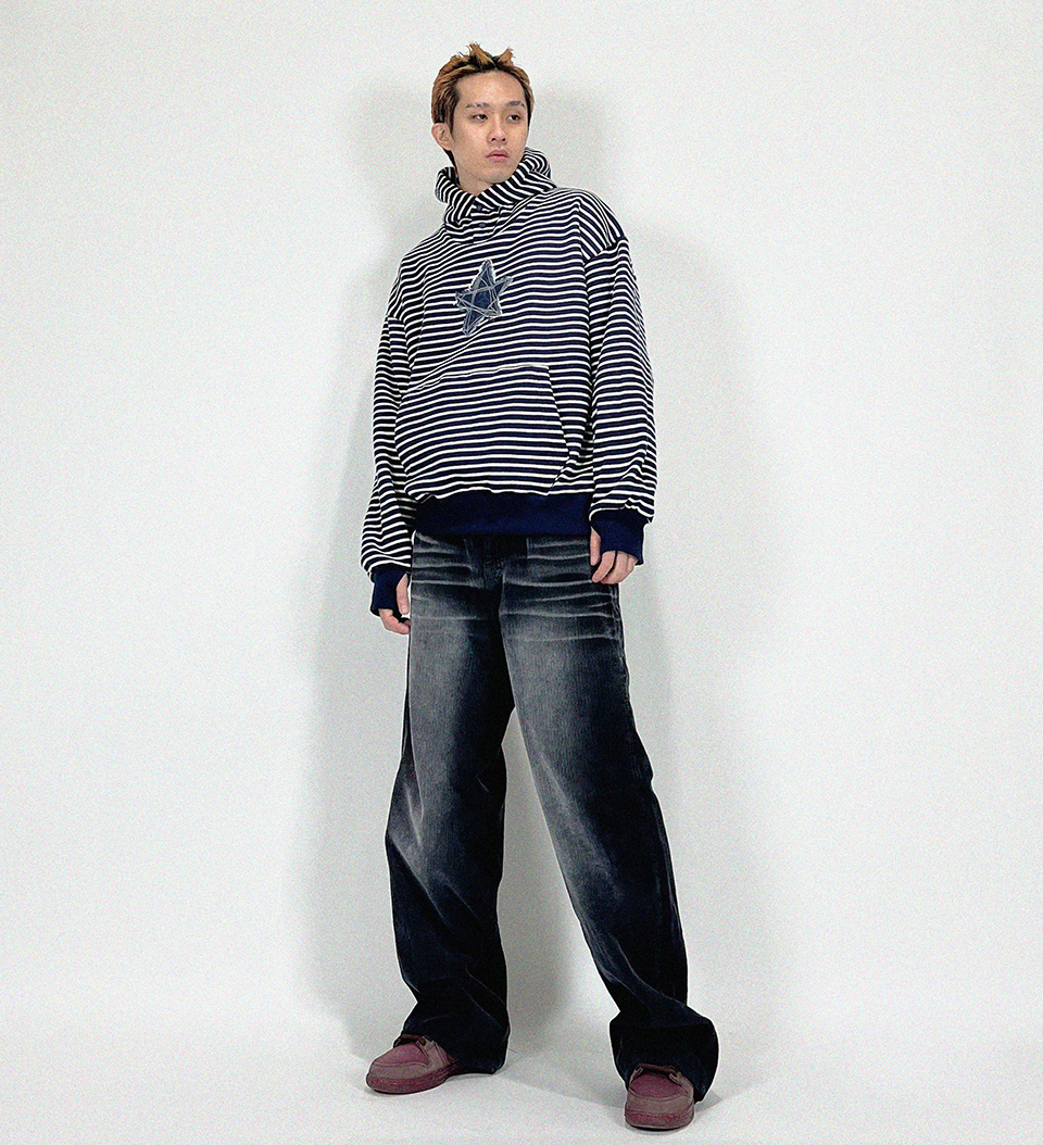 오버핏 후드 배색 엠보자수 후드