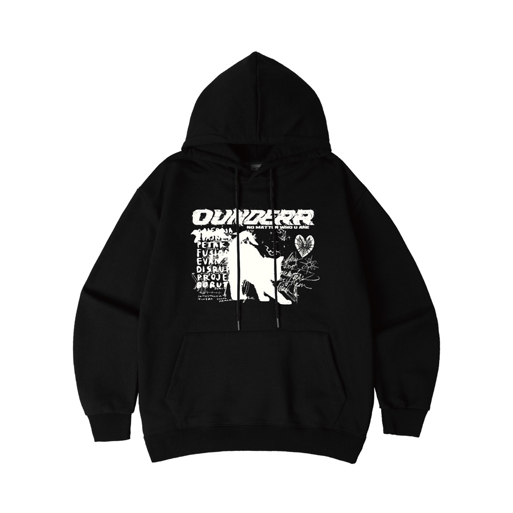 OURSELVES 拼接LOGO连帽卫衣 DAVE款 黑色