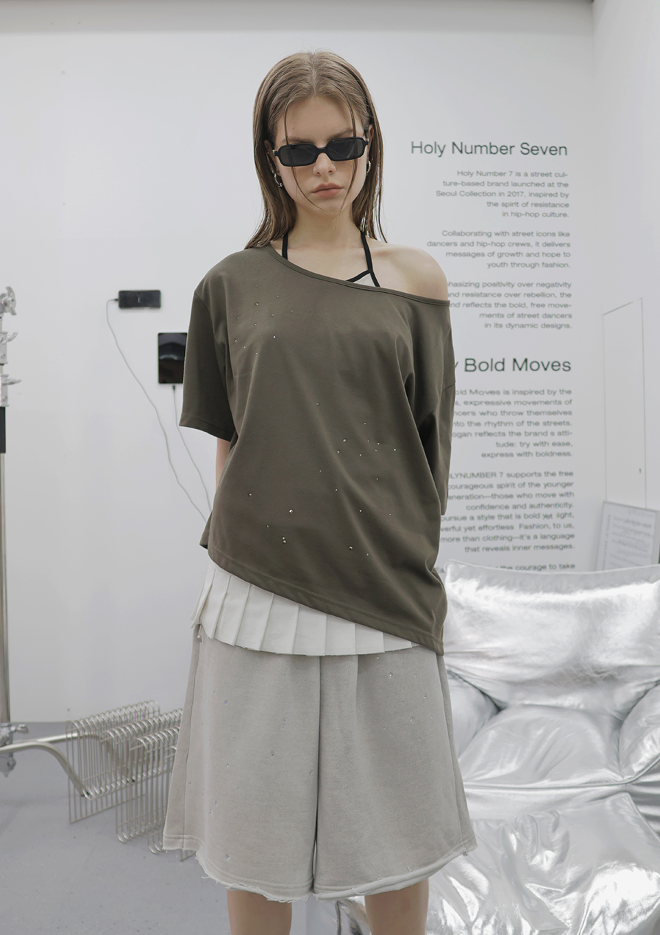 - 오프숄더 반팔티로 여름에 편안하게 입을 수 있는 제품입니다.