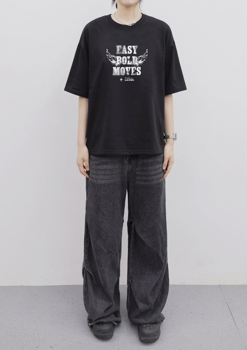 HOLY 动感天使 宽版T恤 黑色