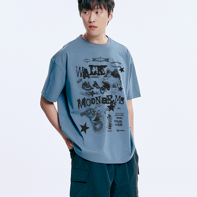 가벼운 소재로 그래픽이 특징인 스트릿 캐쥬얼 반팔티셔츠