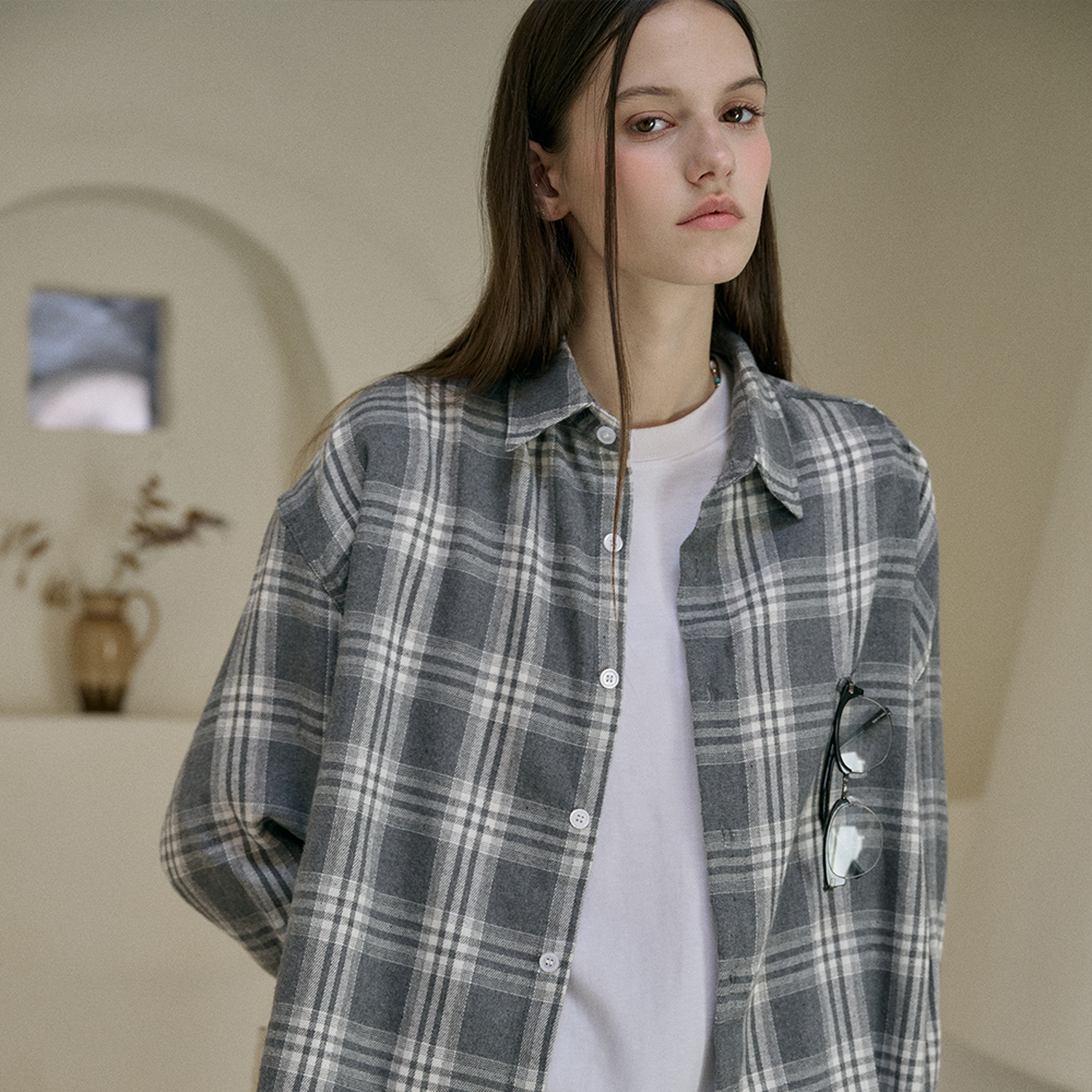25 宽松格纹衬衫(蓝色)