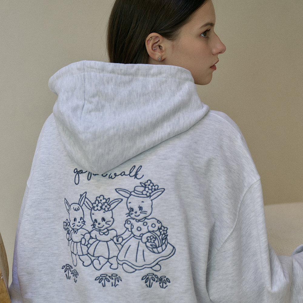 Bloom Rabbit刺绣连帽卫衣 蓝灰色