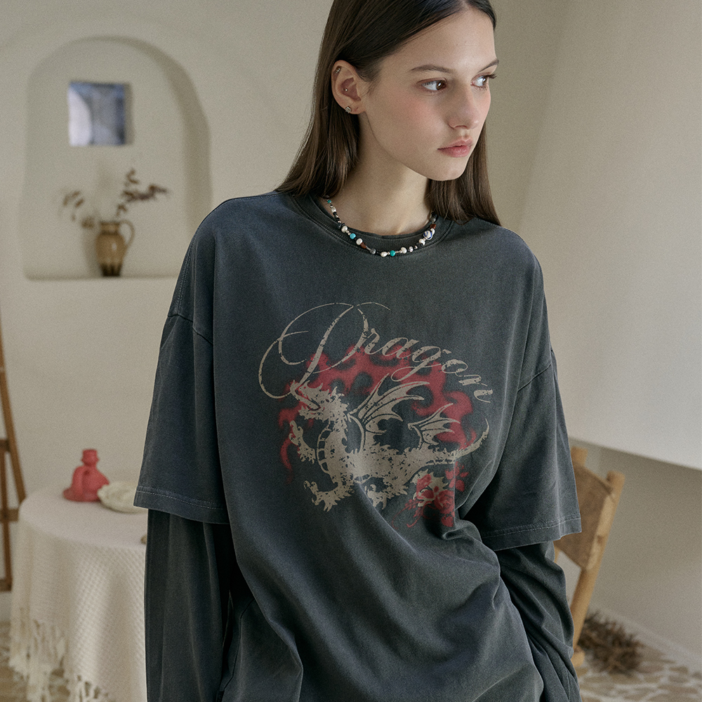 Willy叠穿复古水洗长袖 烟黑色