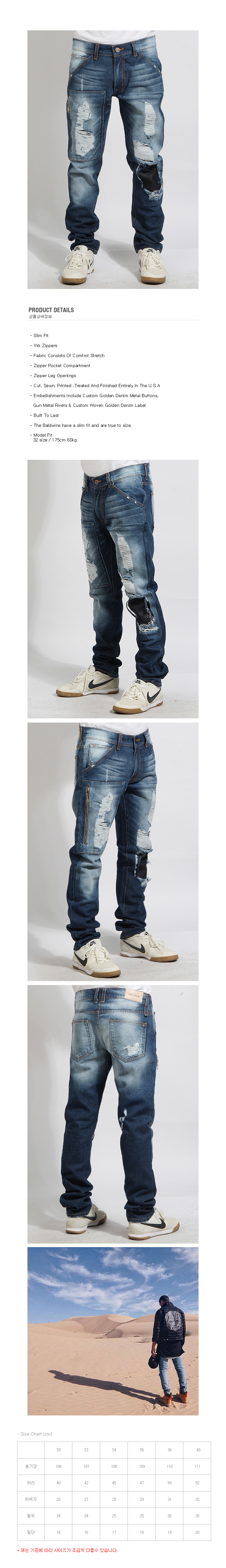Shabby Wide Utility Denim Pants (Vintage Blue)