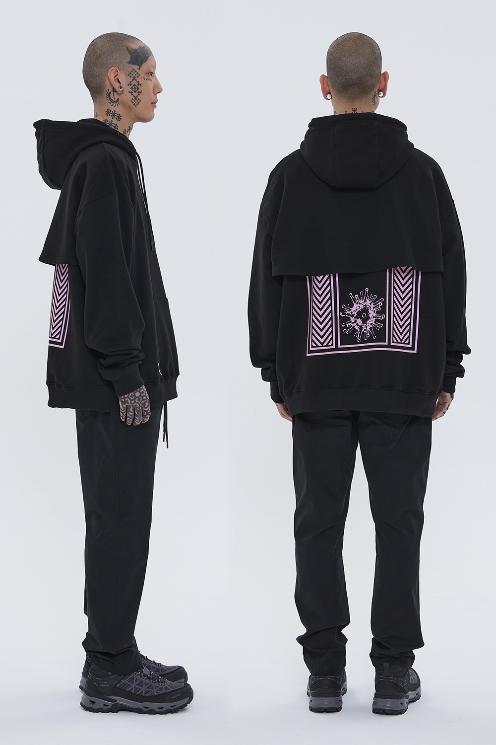 오버핏 빈티지 스트라이프 후드 버건디(FCF3TS644M)