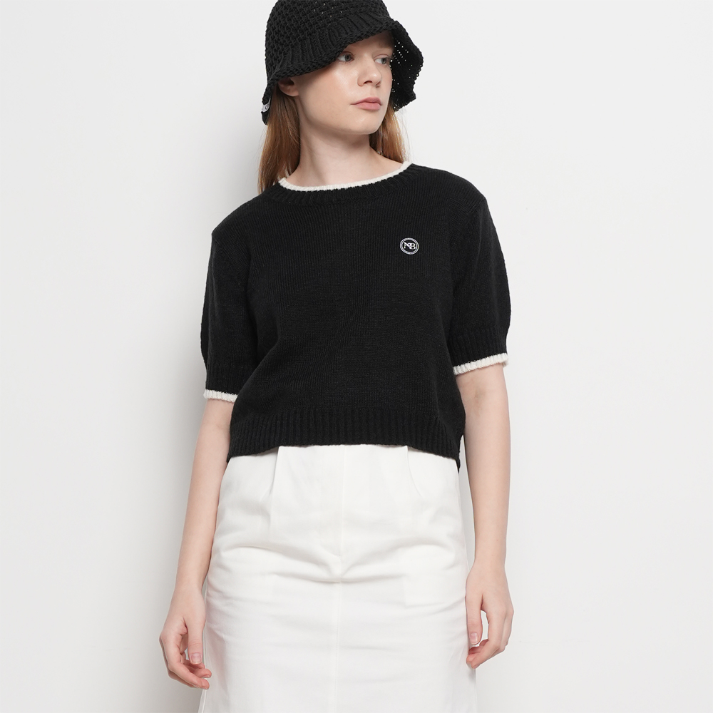 레이스 타이 스카프 디테일로 여성스러움을 더한 반팔 티셔츠