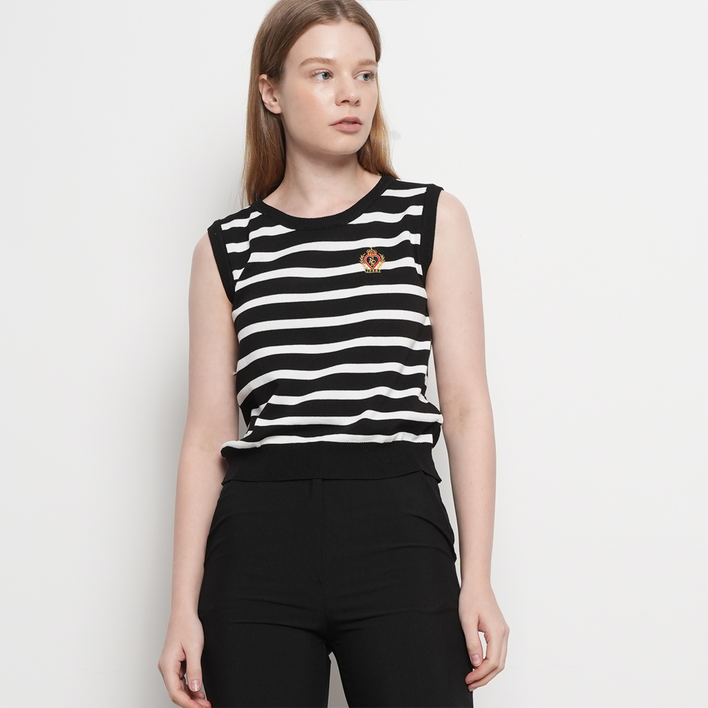 깔끔한 스트라이프와 버튼 디테일로 세련된 매력을 더한 슬리브리스 탑