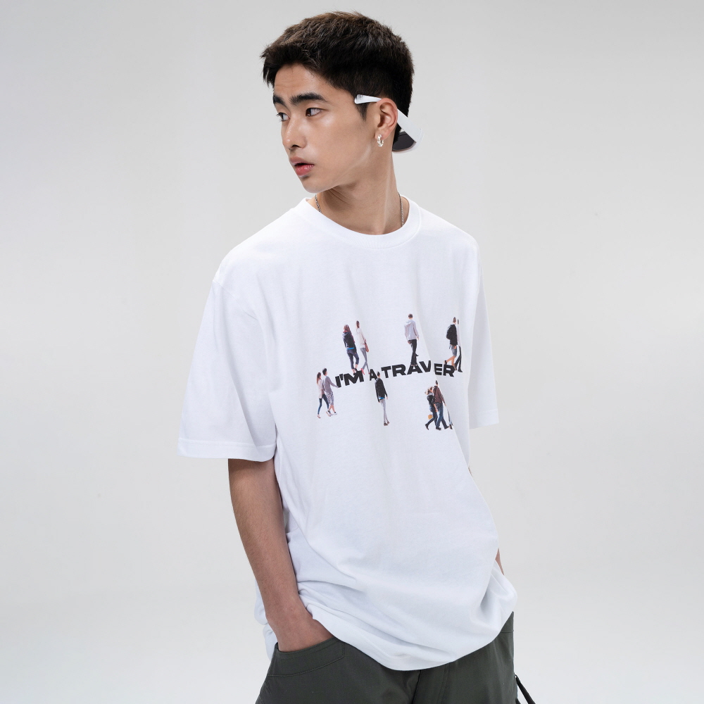 가벼운 소재로 그래픽이 특징인 스트릿 캐쥬얼 반팔티셔츠