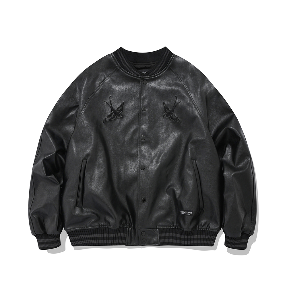 두들 패치가 포인트된 스트릿 무드 바시티 자켓